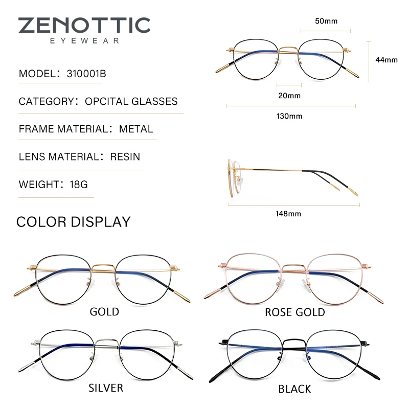 ZENOTTIC сплав полуоправы очки по рецепту для мужчин анти-синий-луч...
