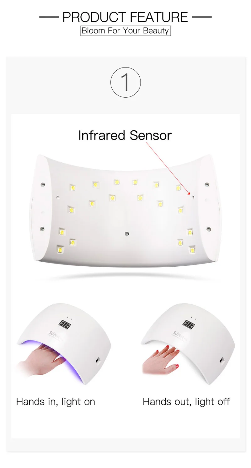Может использоваться для сушки основного лака для ногтей, лака для ногтей, фототерапевтического клея и т. д.