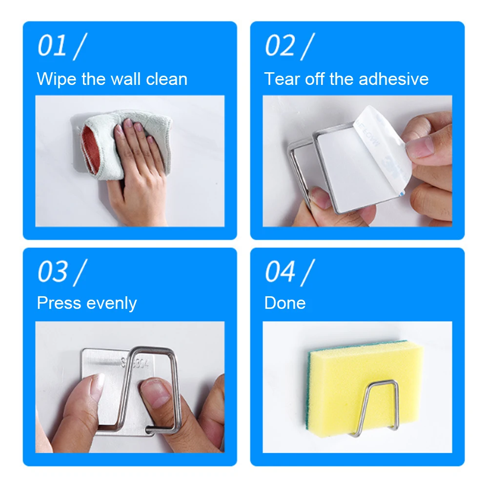 Держатель для губки из нержавеющей стали, самоклеящийся органайзер для хранения губки для раковины