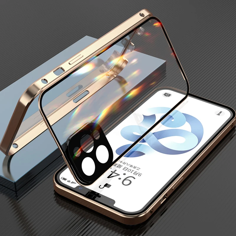 Двухсторонний стеклянный магнитный металлический чехол для телефона...