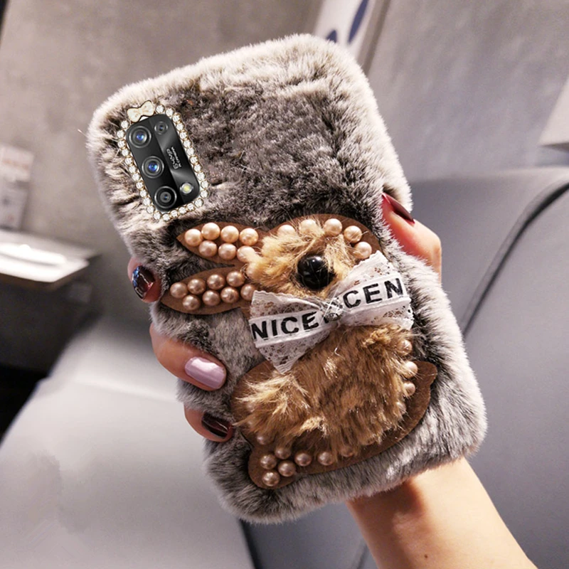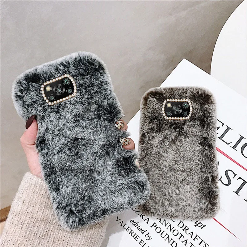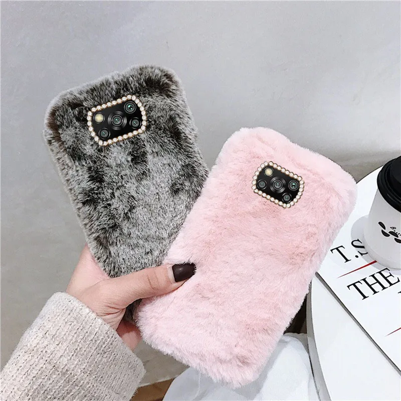 Чехол для Xiaomi Poco X3 NFC, плюшевый чехол с пушистым кроликом дл...