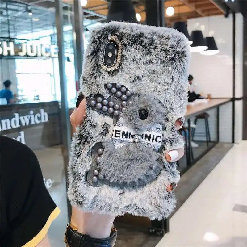 Мягкий плюшевый чехол с кроликом для Samsung Galaxy Note 8, 9, S10 ...