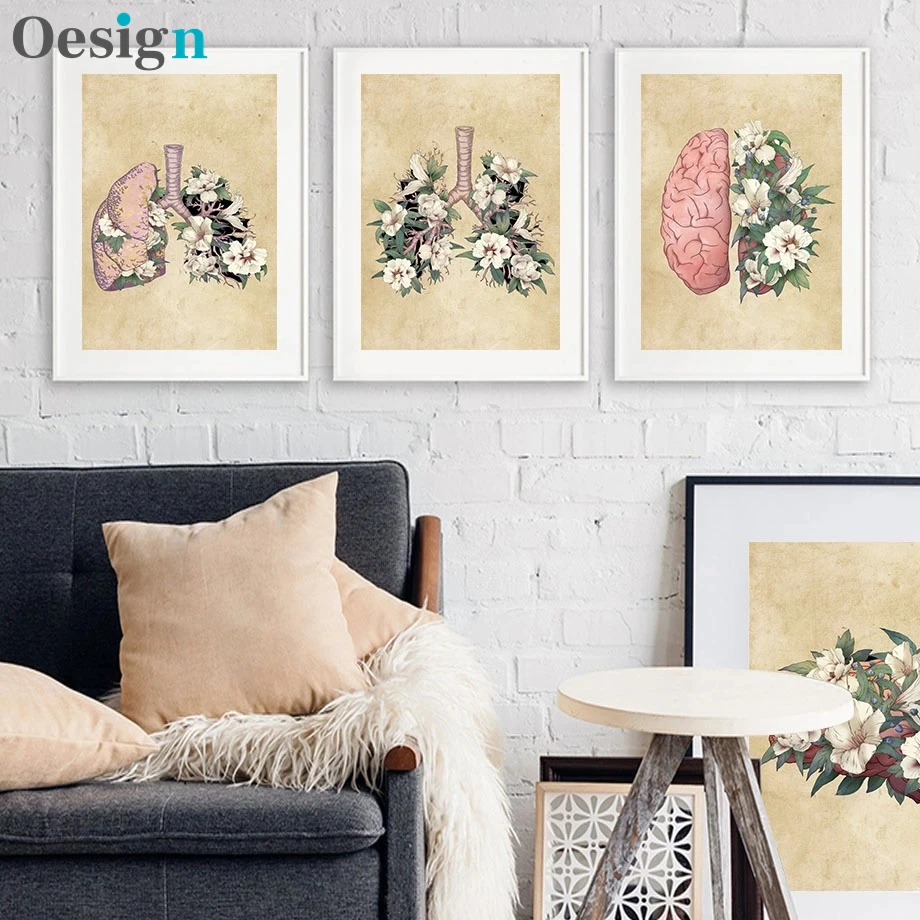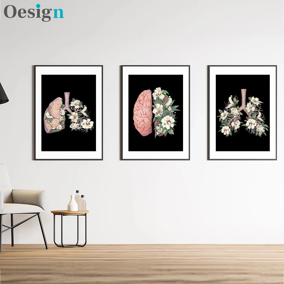 Рождественский подарок Цветочные легкие сердце мозг человек настенная живопись на холсте скандинавские плакаты и принты настенные картины врач офис