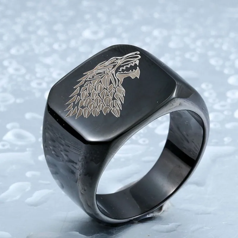Мужское кольцо в готическом стиле ретро с принтом молнии и логотипо...