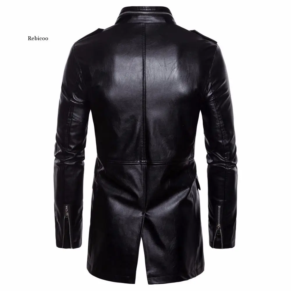 Мужская длинная куртка из искусственной кожи, мотоциклетная ветровк...