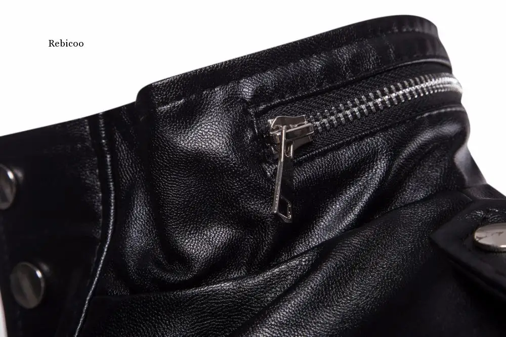 Куртка мужская кожаная средней длины, мотоциклетная байкерская куртка, ветровка, черная верхняя одежда, весна-осень