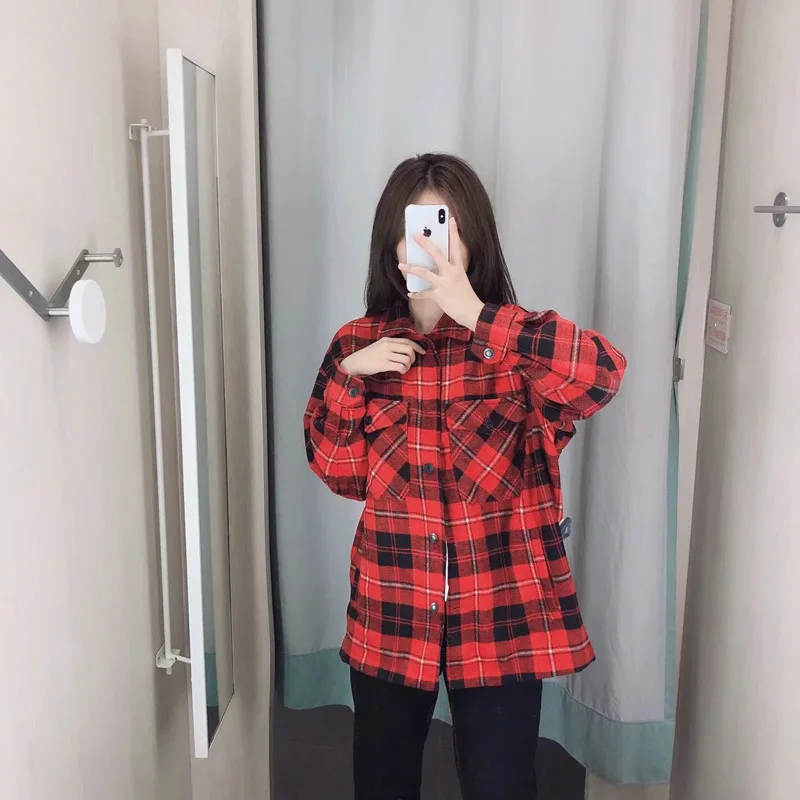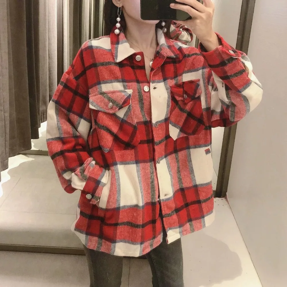 Осенне-зимняя клетчатая рубашка, куртка, пальто, свободное, с отворотом, с карманом, пальто для женщин, винтажная, на пуговицах, мягкая, 8 цветов, куртка, ветровка 2020