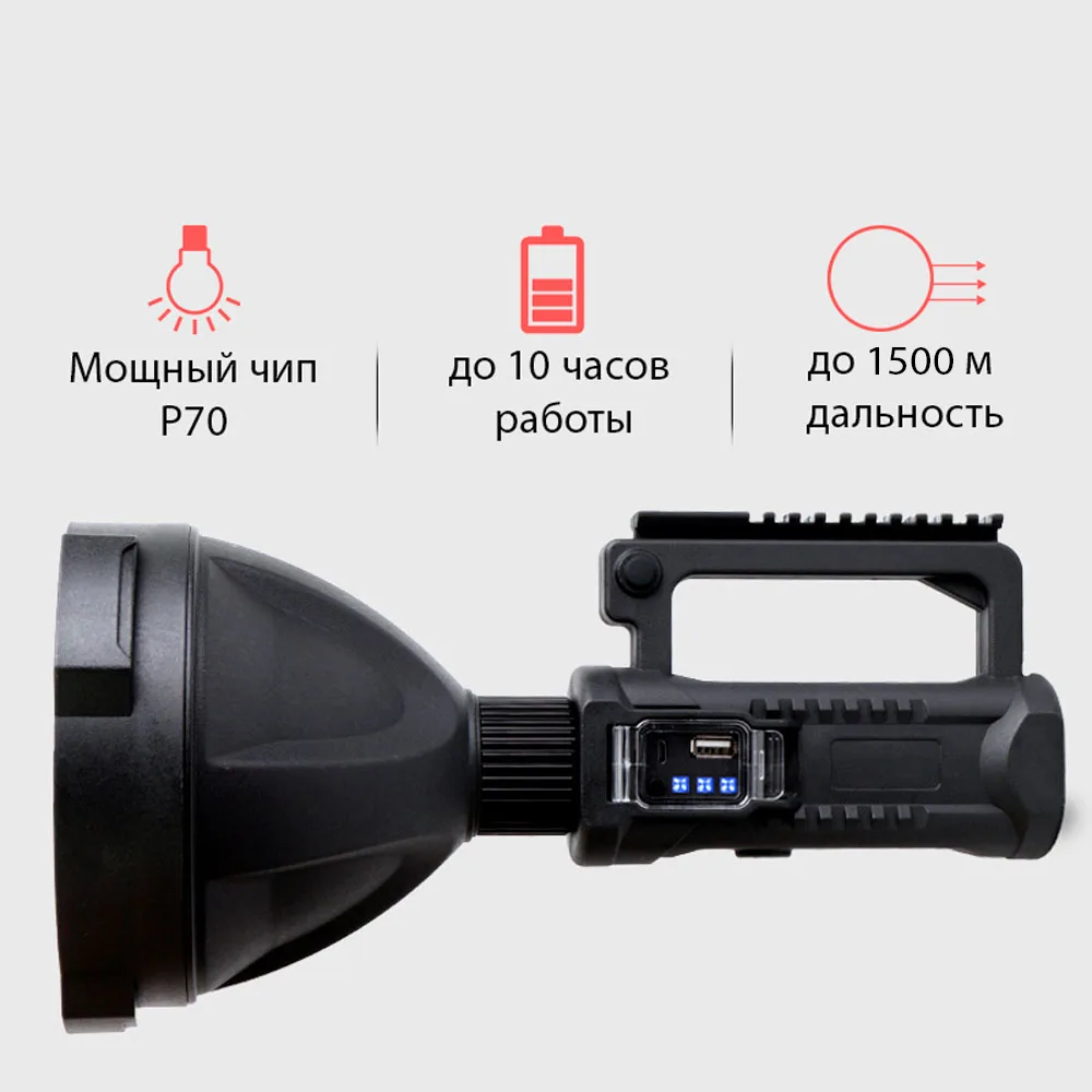 Мощный светодиодный фонарь прожектор, портативный фонарь P70, Powerbank USB, поисковой фароискатель для охоты и рыбалки