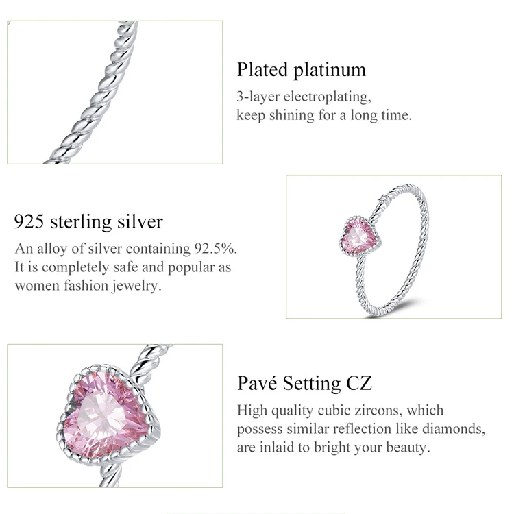 Кольцо женское из серебра 925 пробы, с розовым сердечком