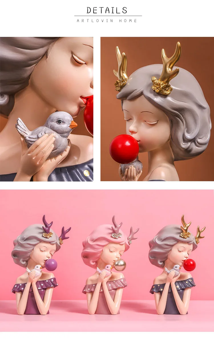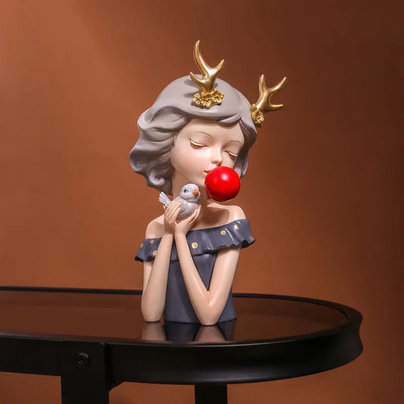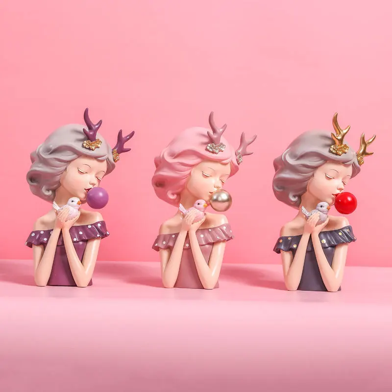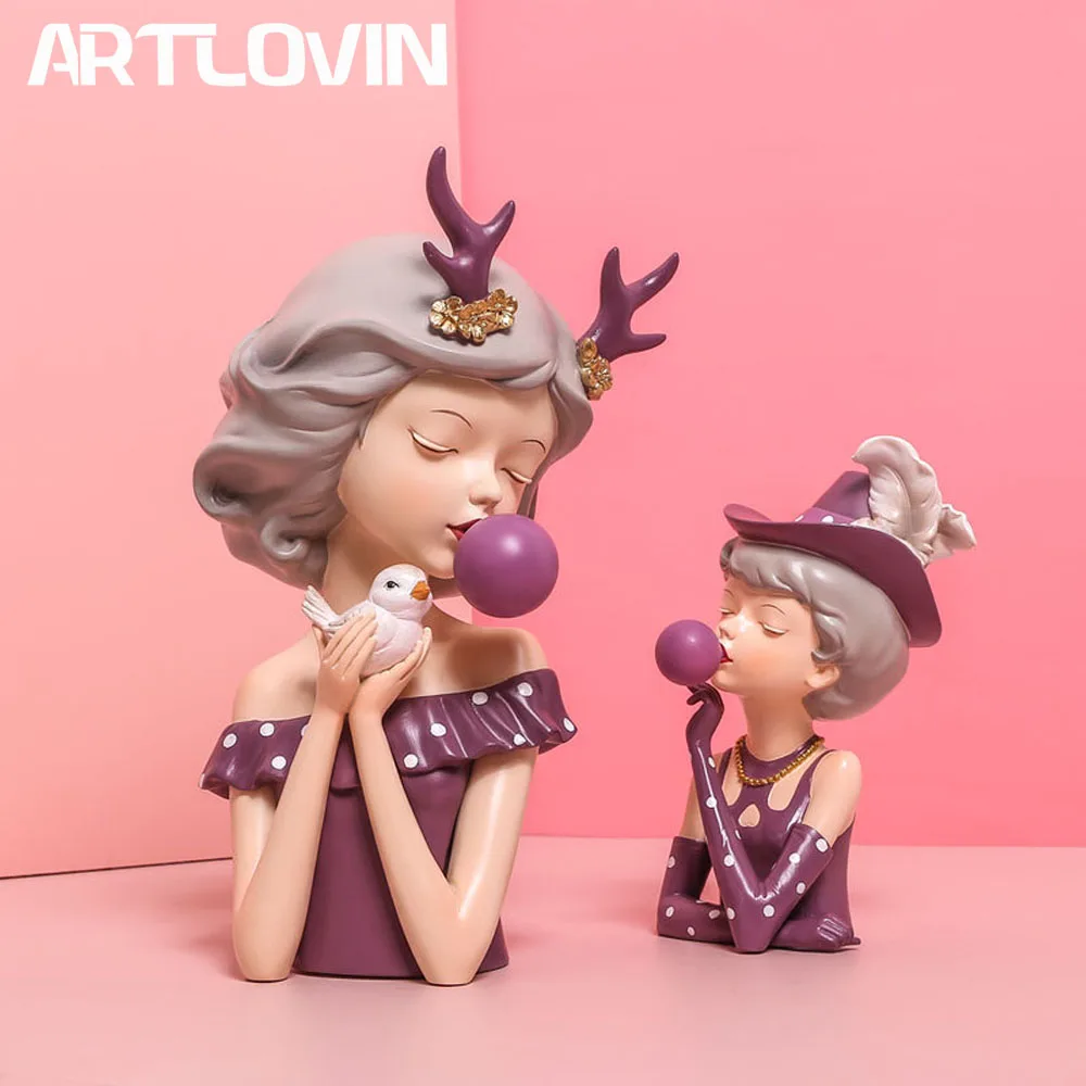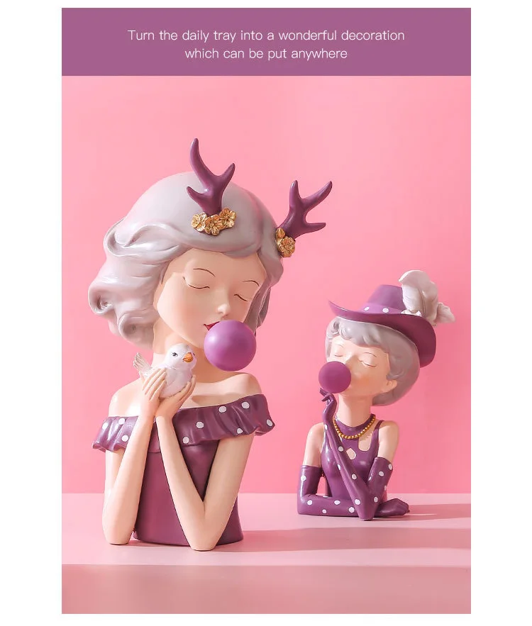 Статуэтка из пузырчатой жвачки для женщин, домашний Декоративная скульптура, современные статуэтки из смолы, шикарное украшение для шкафа, британские элегантные женские ремесла