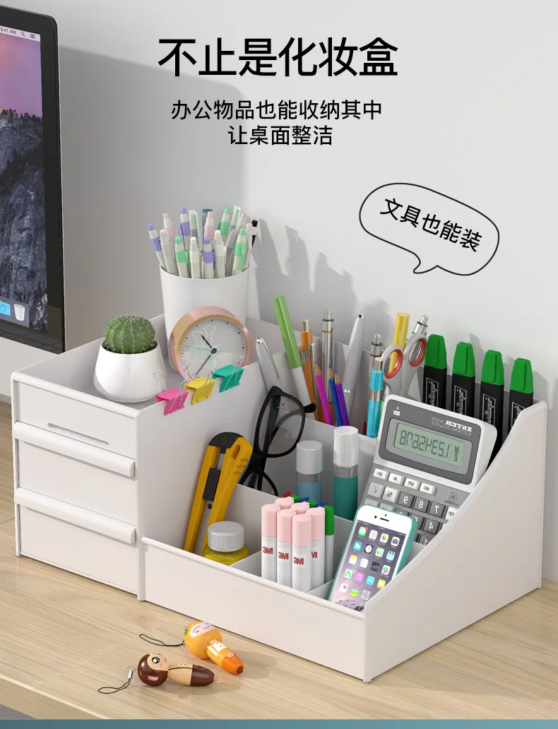 Настольный ящик для хранения косметики, вместительный органайзер дл...