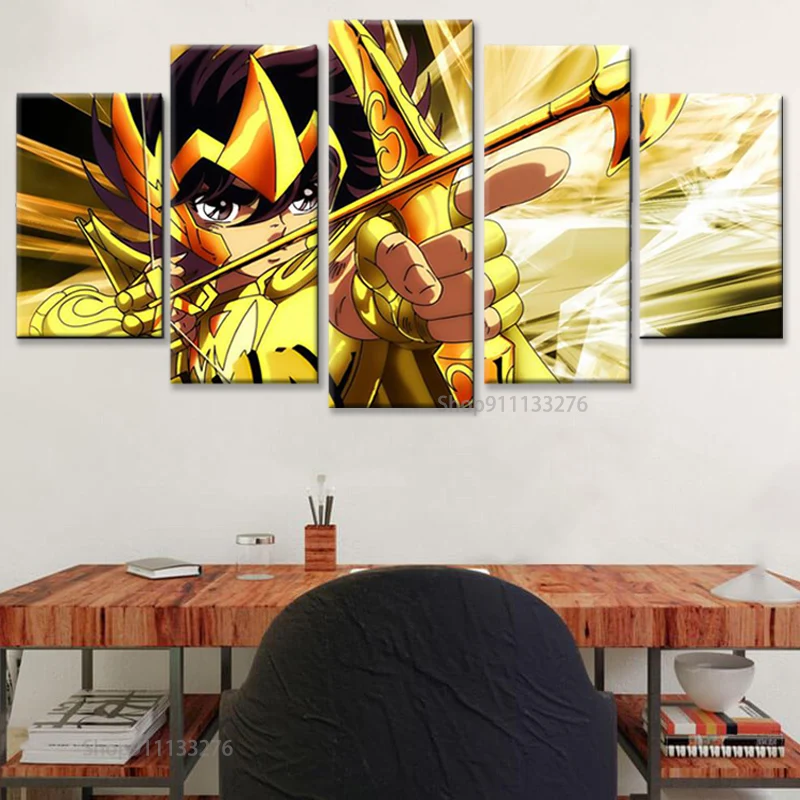 Настенная картина из 5 предметов HD с изображением персонажей мультфильмов Сен-Сейя, рыцари зодиака, современная картина для детской комнаты, декоративная рамка для дома