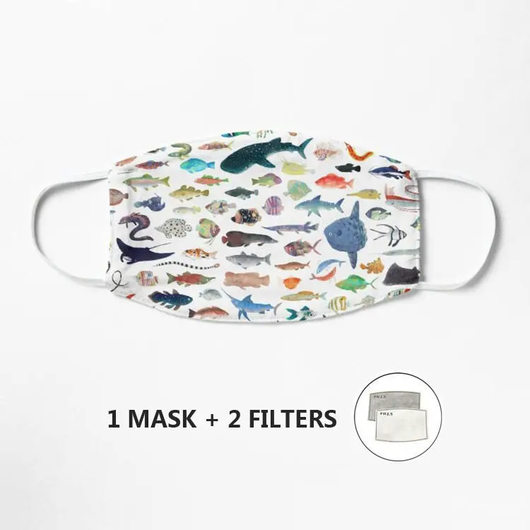 Маска Сто рыбок для женщин, мужчин, детей, 3d Маска Веселая рот, стирающаяся, в стиле хип-хоп, для вечеринки, с 2 фильтрами