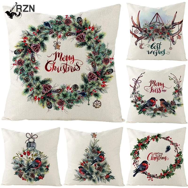 Рождественский чехол для подушки 45*45, Цветочная наволочка, хлопковые льняные диванные подушки, Наволочки для подушек 0269