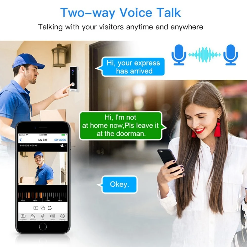 1. Две батареи 18650. (опционально) 2. 2.0 миллионов пикселей Full HD Cmos сенсор. 3. 2,8 мм широкоугольный объектив с фильтр, отсекающий ИК-область спектра, переключение, независимо от того, во время съемки как днем, так и ночью, изображение хорошо видно, для вашей безопасности и семейной безопасности. 4. Поддерживает мобильный телефон, удаленное устройство быстрого пробуждения в течение 1 секунды. 5. Wi-fi соединение 2,4G. (802.11b/g/n) 6. Высококачественный двусторонний разговор с шумоподавлением. 7. Поддержка обнаружения движения PIR, когда кто-то поднимается у двери, немедленно оповещает push-уведомления на мобильный телефон. 8. Память: максимальная поддержка sd-карты 64 Гб.