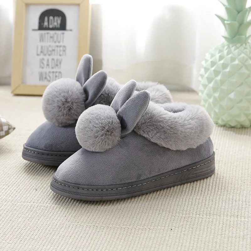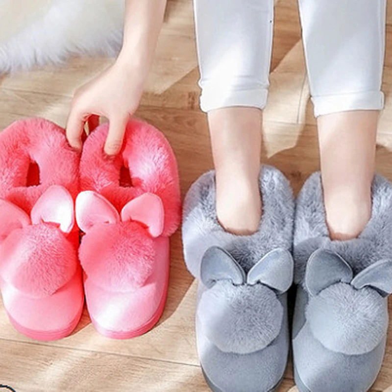 Тапочки женские, хлопковые, с меховыми кроличьими ушками, теплые, на толстой подошве, для осени и зимы, 2020