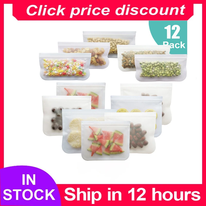 12 шт.компл. силиконовый Пакет PEVA, силиконовая сумка для хранения пищевых продуктов, контейнер, сумка на молнии с застежкой-молнией