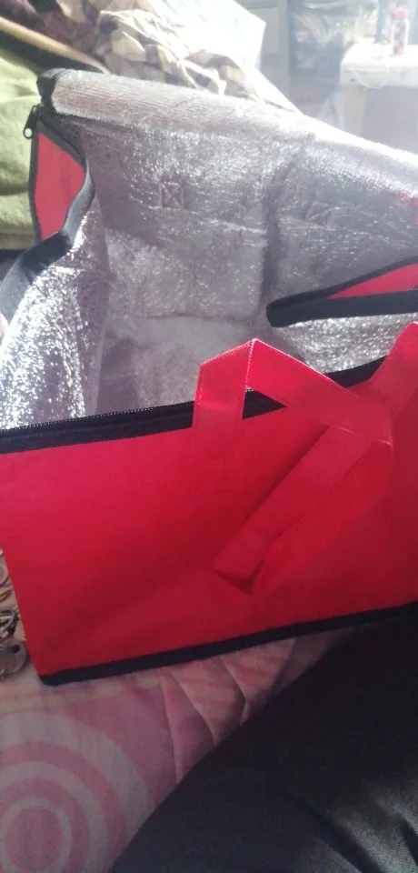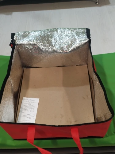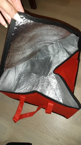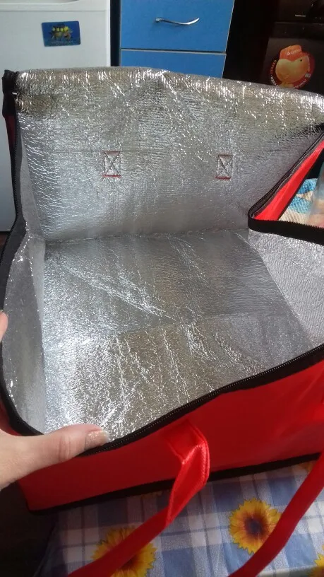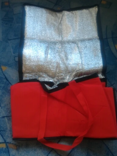 сумка очень мягкая, по сути как пакет прошитый изнутри вспененной фольгированной изоляционной тканью. я ожидала что сумка будет как коробка, а эта сумка как пакет с молнией, наверное нужно придумать дно, чтобы форму держала