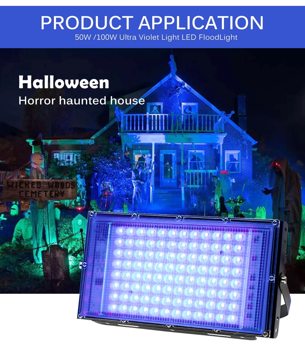 Ультрафиолетовый светодиодный прожектор, флуоресцентсветильник черный светильник для Хэллоуина, вечеринки, выпускного вечера, дома с привидениями, 50 Вт, 100 Вт, 150 Вт, 220 Вт