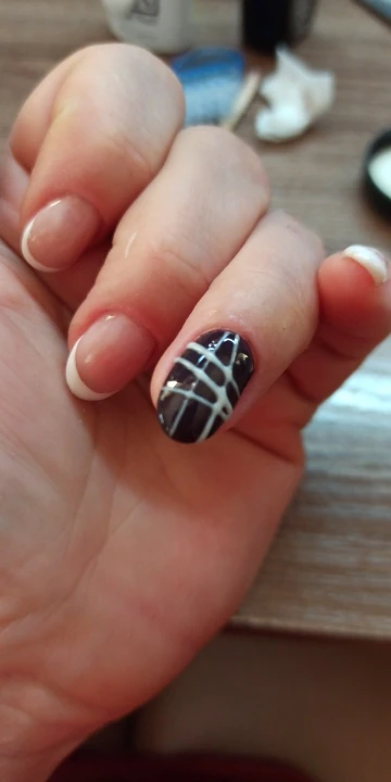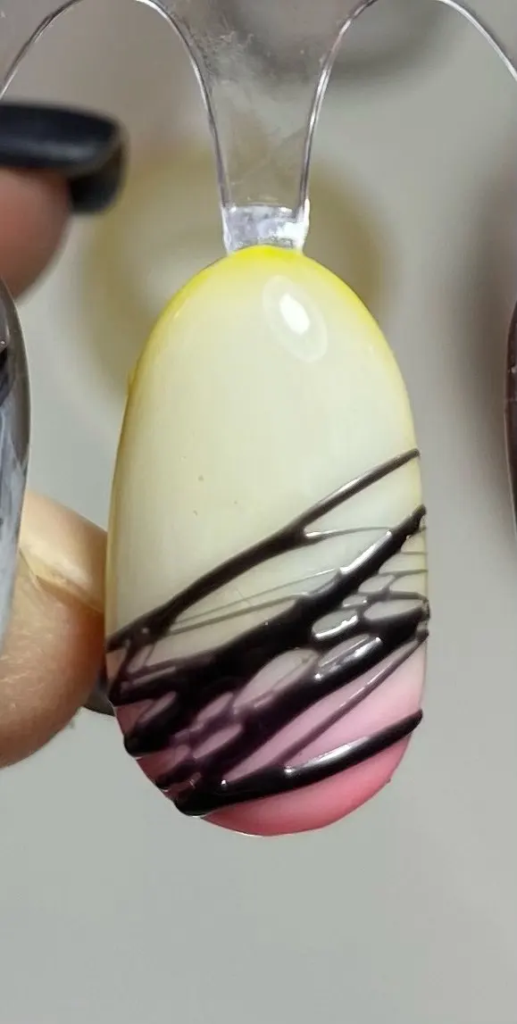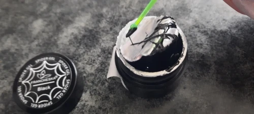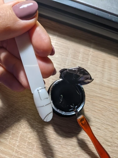 Доставка месяц. Товар соответствует описанию и фото продавца. Тянется хорошо, работать с ней не сложно. Прилагаю первые попытки сделать ровные линии и полукругом, получилось сразу, линии выходят тонкие. Сохнет быстро. Рекомендую, крутая вещь
