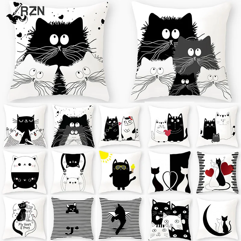 Забавный милый черный чехол для подушки для влюбленных из полиэстера 45*45, наволочка для дивана, автомобиля, украшение для дома и комнаты
