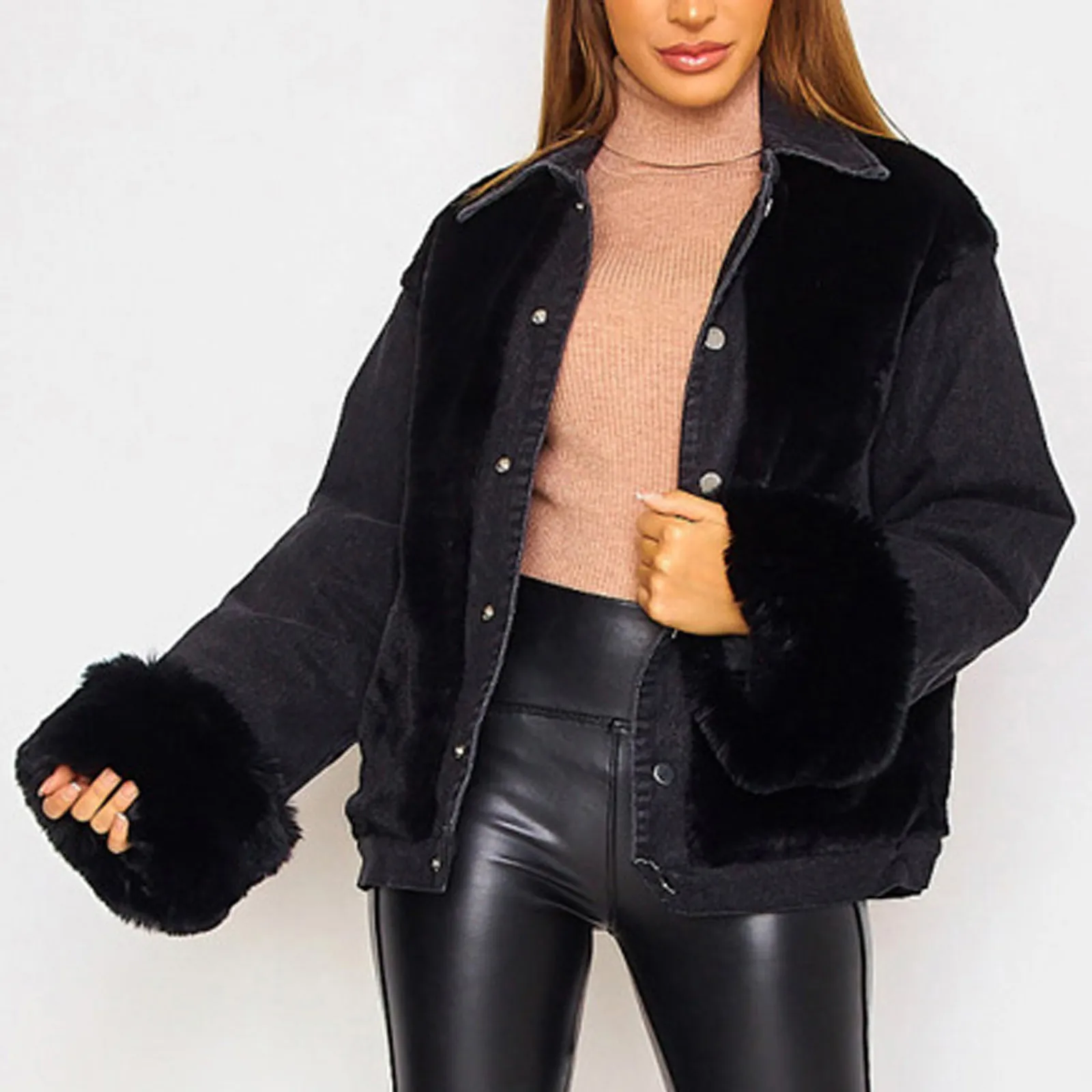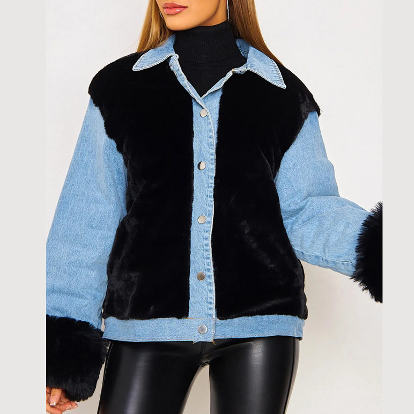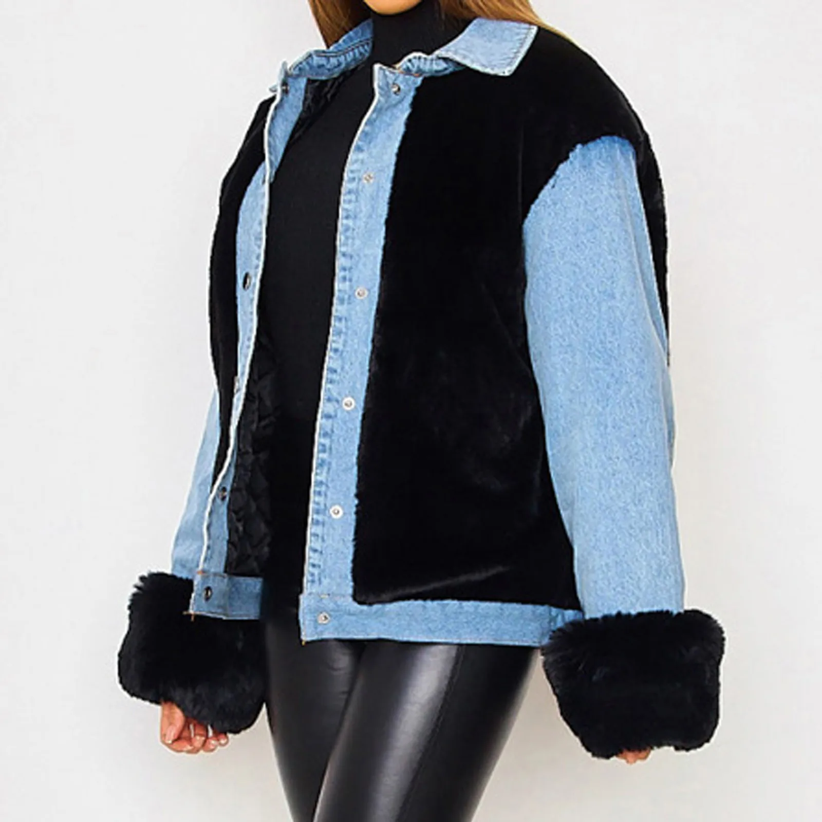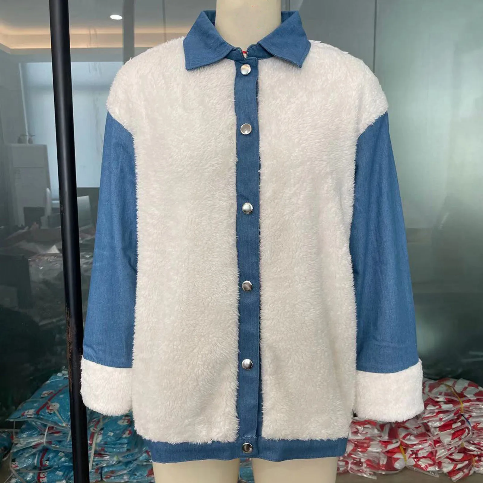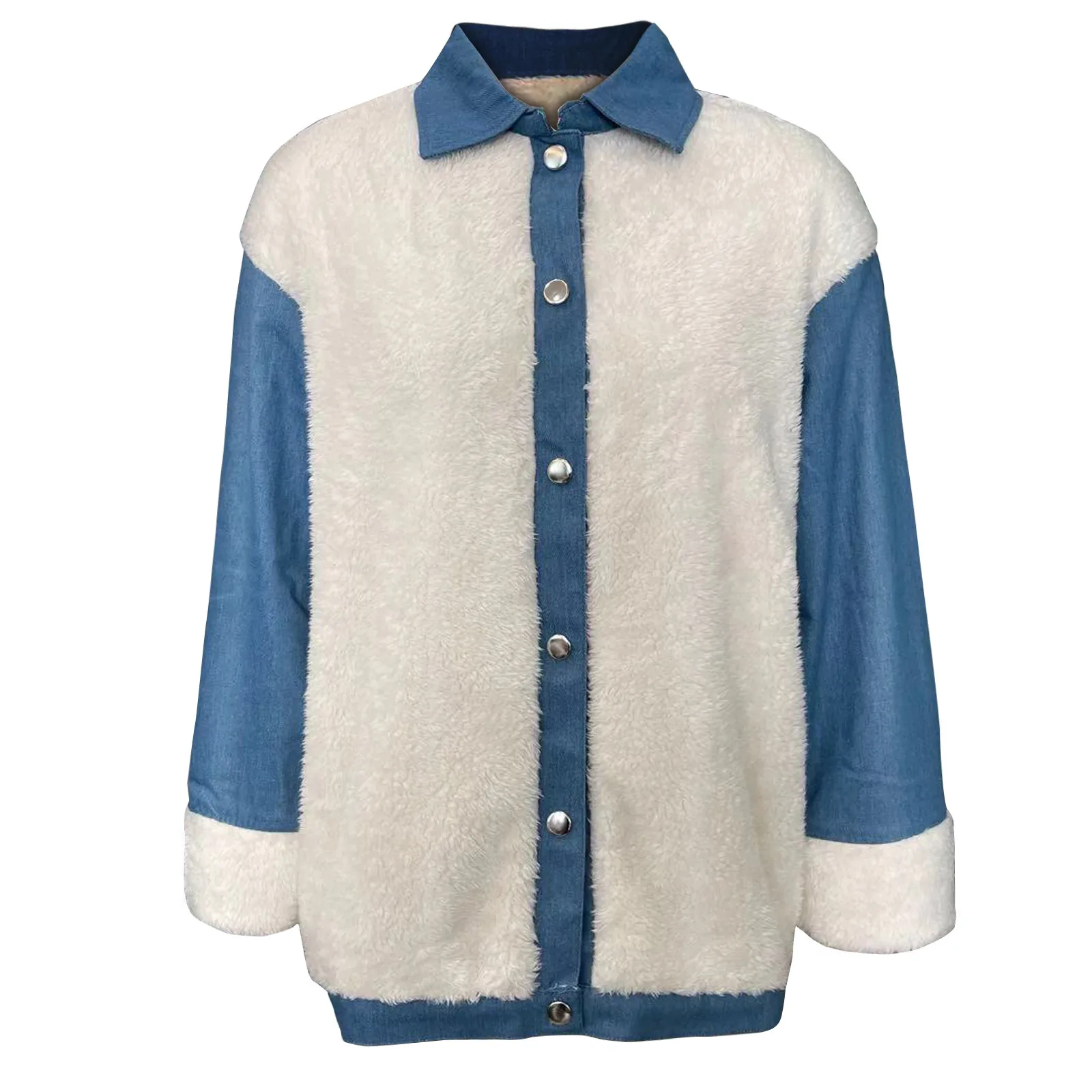 Куртка женская джинсовая, Модный повседневный плюшевый теплый кардиган в стиле пэчворк, уличная одежда из денима, зимний жакет