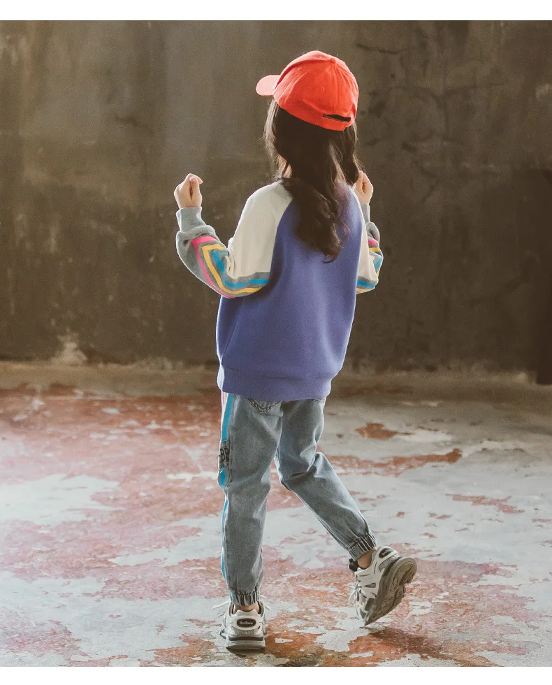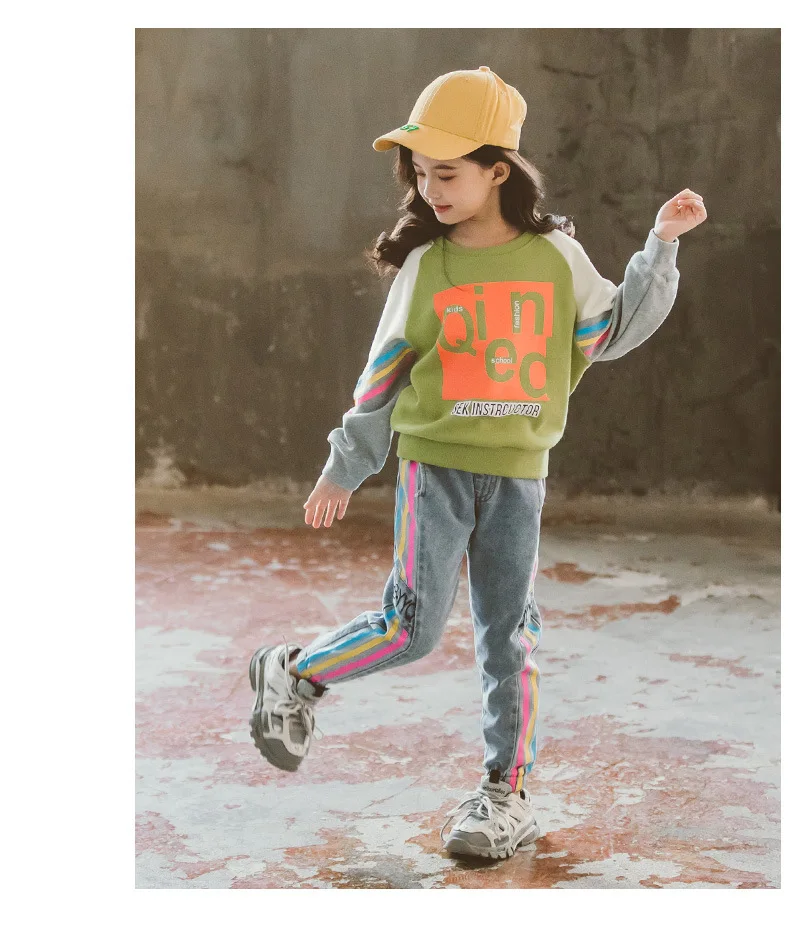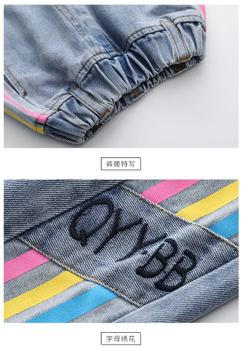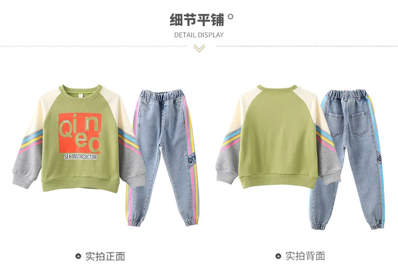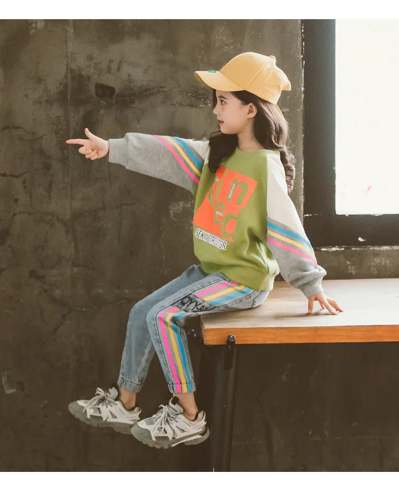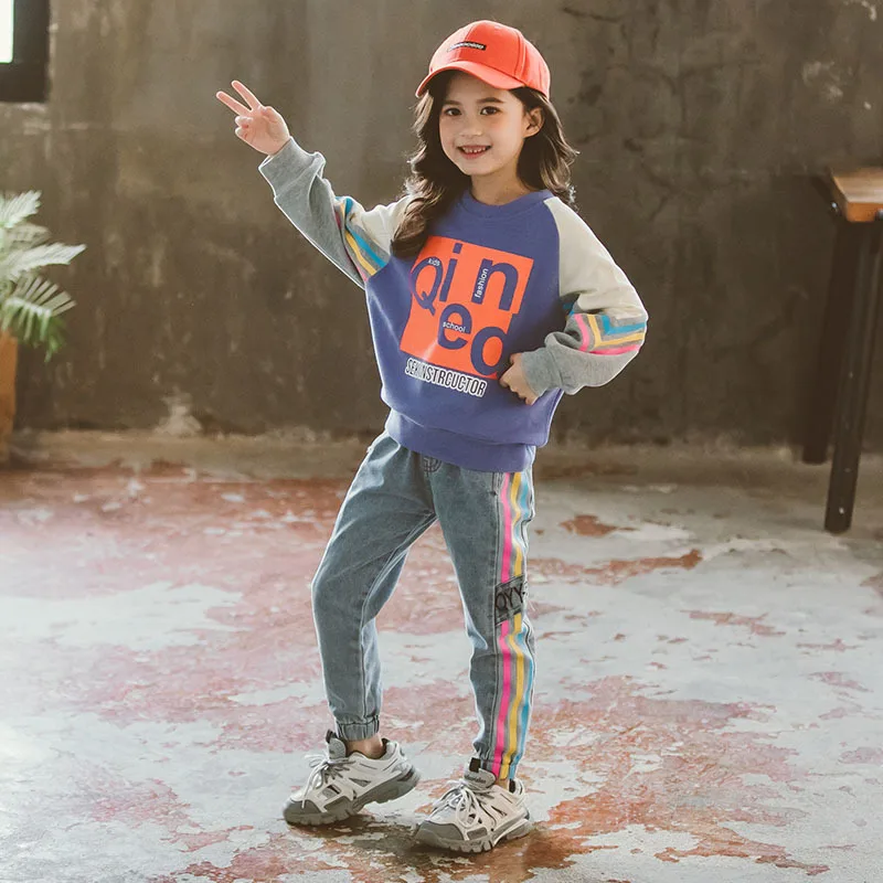 Спортивный костюм для девочек 8, 10, 12 лет; Джинсовый комплект; Сезон весна-осень; Цвет комплекты одежды в полоску комплект повседневной одежды из двух предметов, одежда