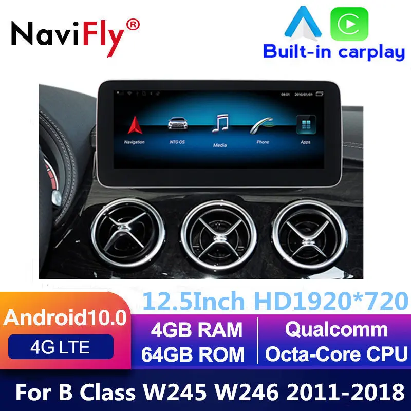 12,5 "HD1920*720 4G Android 10 автомобильный Радио Аудио мультимедийный плеер GPS навигация для Mercedes benz B Class W245 w246 2011-2018
