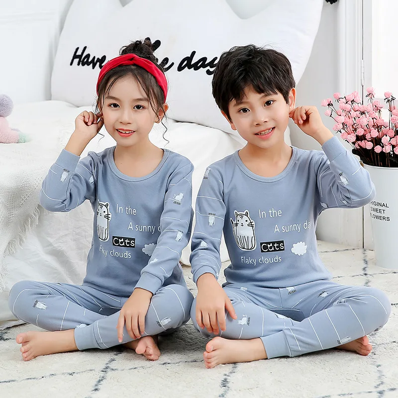 Пижамные комплекты для девочек и мальчиков, зимнее термобелье, детские пижамы, хлопковая одежда для сна, комплект из топа и брюк, детские пижамы с длинным рукавом