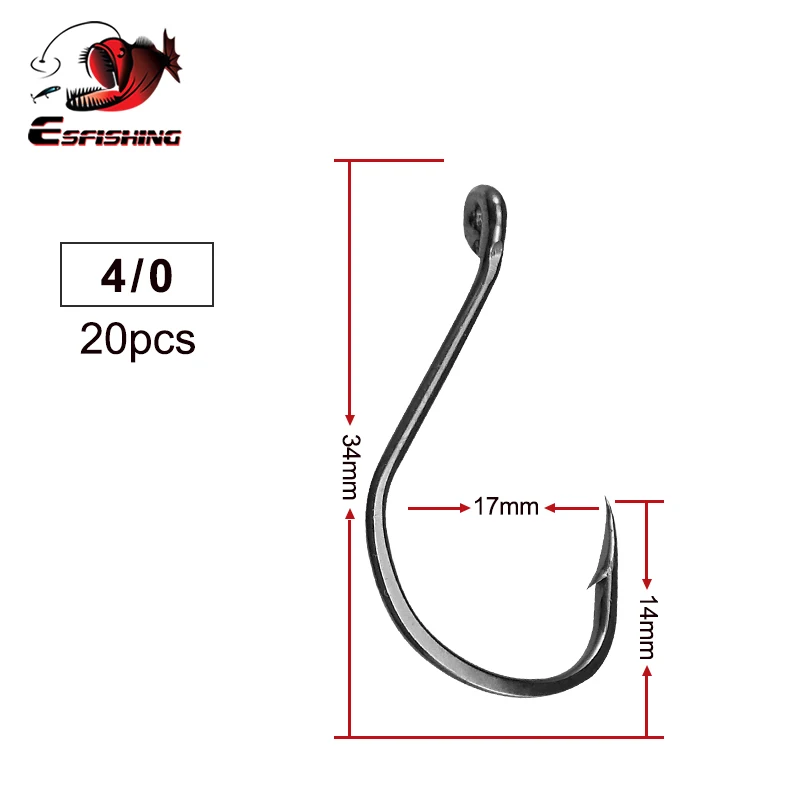 Рыболовные крючки ESFISHING, крючки из высокоуглеродистой стали, 20 шт., 10, 20, 30, 40, высокопрочные крючки с одним ушком для мягкой приманки