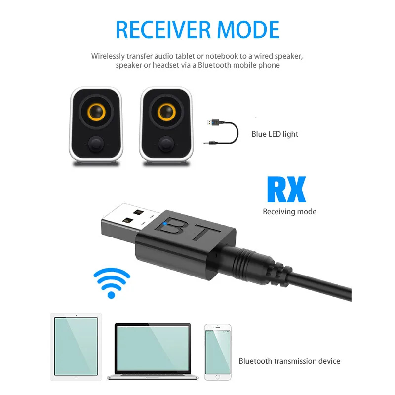 VAORLO, включающим в себя гарнитуру блютус и флеш-накопитель USB 5,0 передатчик аудио приемник Bluetooth AUX USB 3,5 мм AUX для ТВ наушникам ПК дома обоих концах для подключения внешних устройств к автомобильной аудио