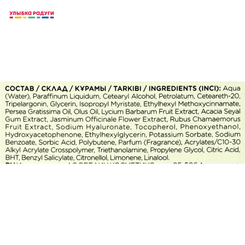 Глубокo увлажняющий крем-масло, созданный на основе 100% натурального масла авокадо и растительных экстрактов, насыщает кожу влагой, улучшает цвет лица, придает упругость и подтягивает овал лица. Комплекс природных активных компонентов глубоко увлажняет и восстанавливает естественный водный баланс, укрепляет и подтягивает овал лица, интенсивно питает кожу.Применение:Ежедневно утром наносить на очищенную кожу лица, шеи и декольтеСостав:Aqua (Water), Paraffinum Liquidum, Cetearyl Alcohol, Petrolatum, Ceteareth-20, Tripelargonin, Glycerin, Isopropyl Myristate, Ethylhexyl Methoxycinnamate, Persea Gratissima Oil, Olus Oil, Lycium Barbarum Fruit Extract, Acacia Seyal Gum Extract, Jasminum Ocinale Flower Extract, Rubus Chamaemorus Fruit Extract, Sodium Hyaluronate, Tocopherol, Phenoxyethanol, Hydroxyacetophenone, Ethylhexylglycerin, Potassium Sorbate, Sodium Benzoate, Sorbic Acid, Polybutene, Parfum (Fragrance), Acrylates/C10-30 Alkyl Acrylate Crosspolymer, Triethanolamine, Propylene Glycol, Citric Acid, BHT, Benzyl Salicylate, Citronellol, Limonene, Linalool.