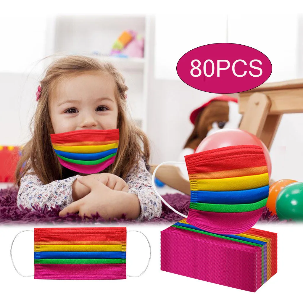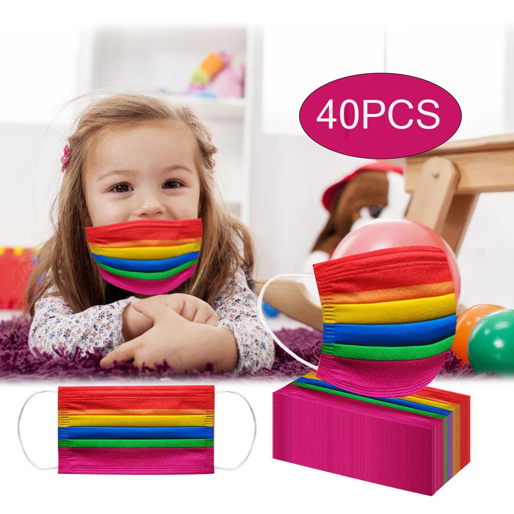 Для девочек и мальчиков одноразовая Защитная маска для лица, для детей, с принтом радуги, лицевая часть маски маска 3Ply Пылезащитная маска для лица 10-200 ПК