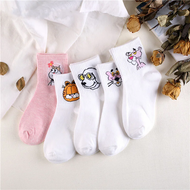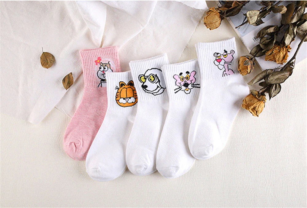 Японские кавайные женские носки без пятки с рисунками животных милые длинные хлопковые носки с изображением кролика Пантеры Женские и женские розовые молочно-белые носки