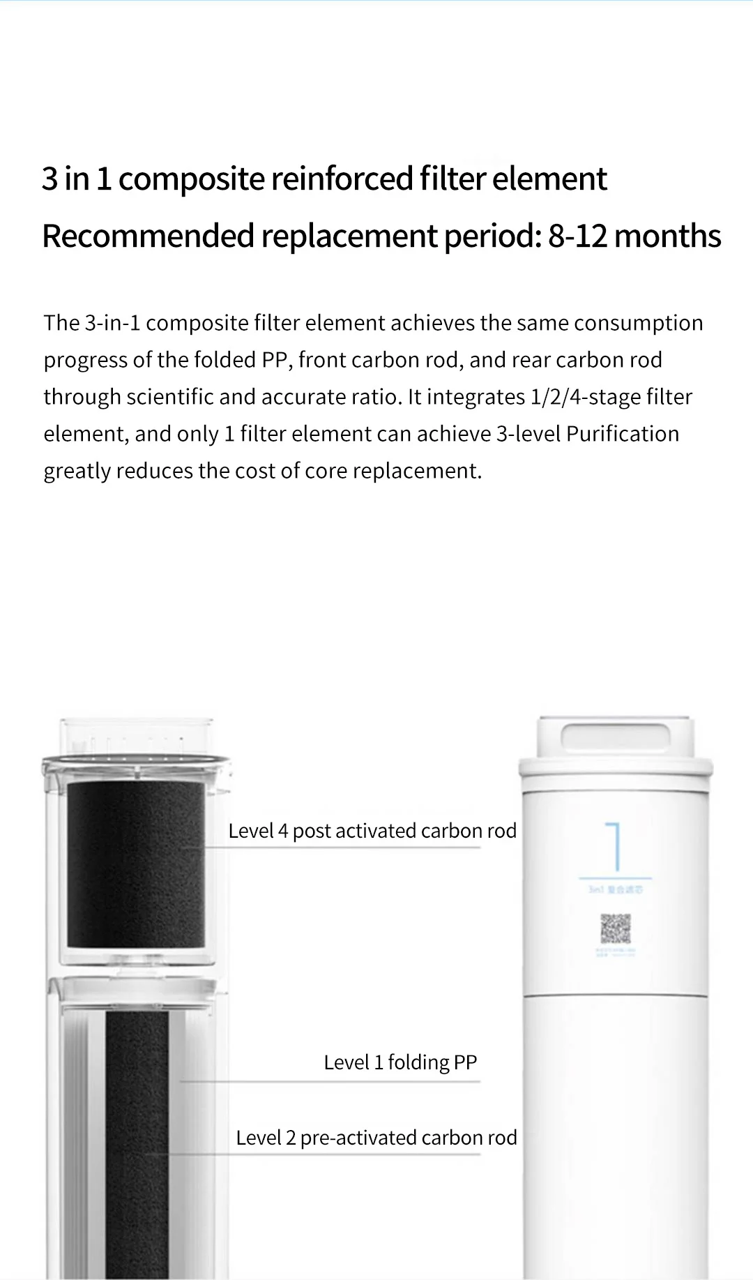 Оригинальный очиститель воды Xiaomi Mijia 1A 3-в-1 Композитный фильтр элемент обратного осмоса