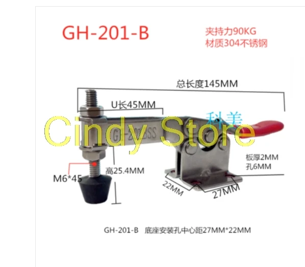 Горизонтальный тумблерный зажим из нержавеющей стали серии GH-201, 1 шт., быстросъемный, 27 кг, 90 кг, 304 кг, вертикальный тумблерный зажим, ручной зажим