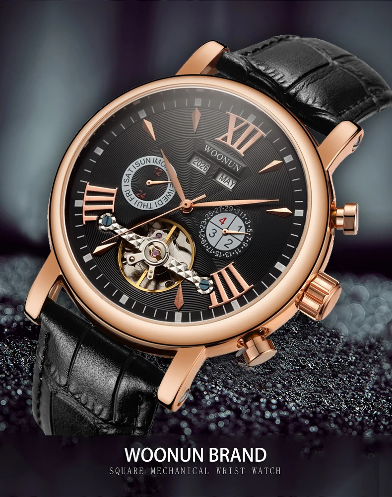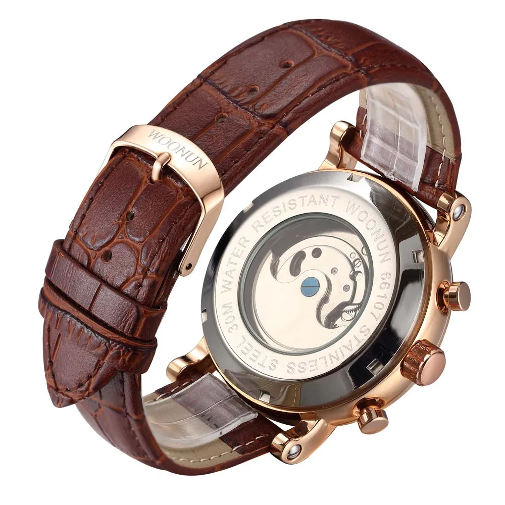 Часы мужские механические, с автоподзаводом, под розовое золото