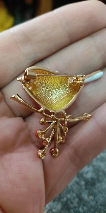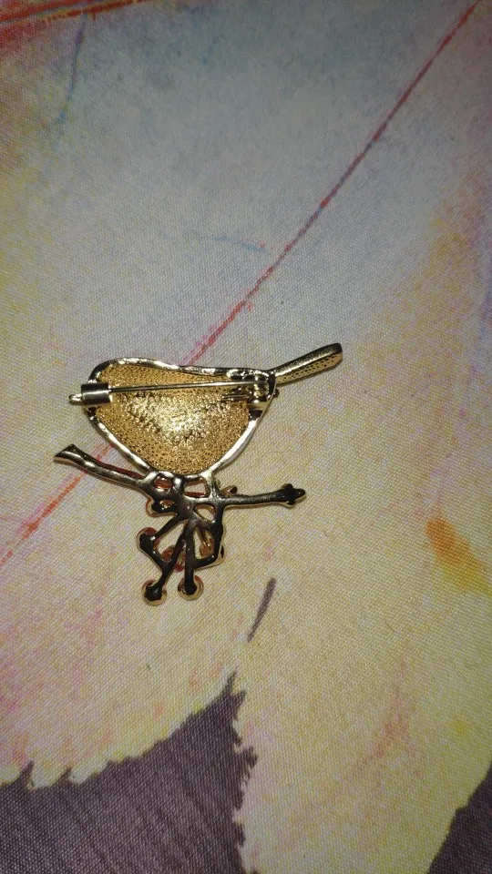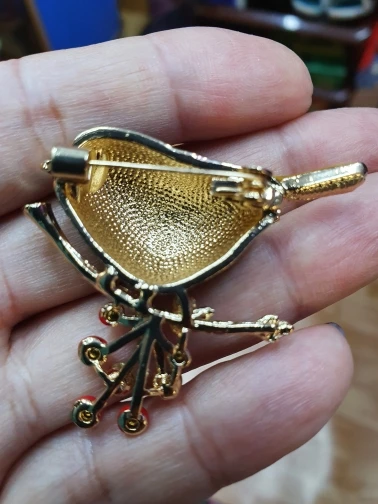 Как на фото- приятная брошь- птичка, но все же серебро почаще используйте- золото простит все броши..