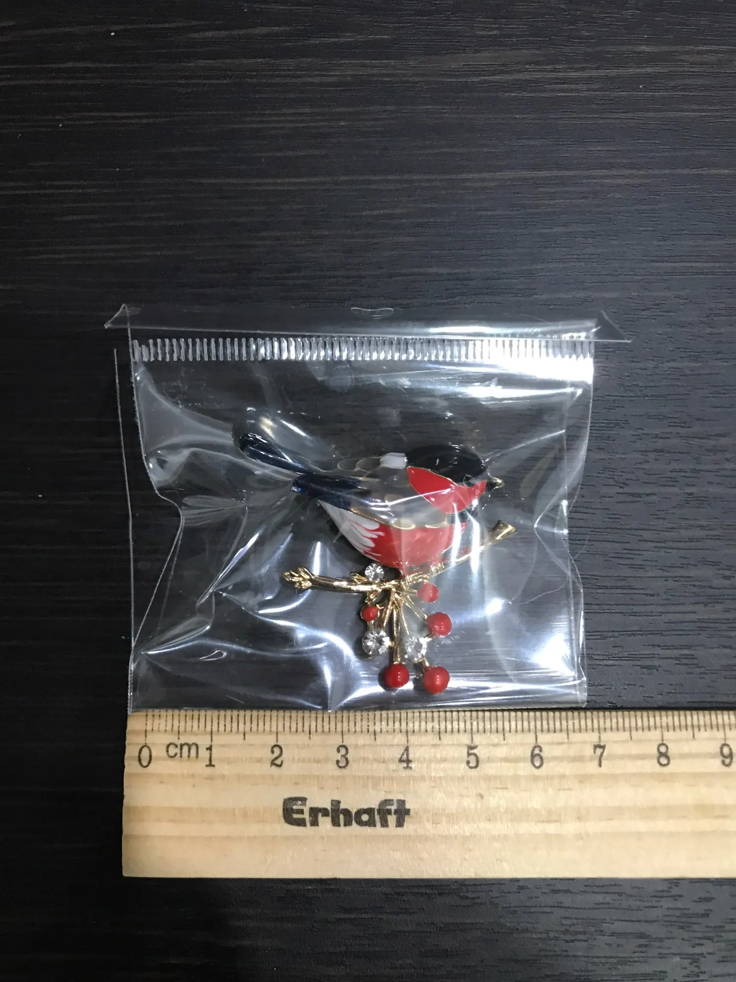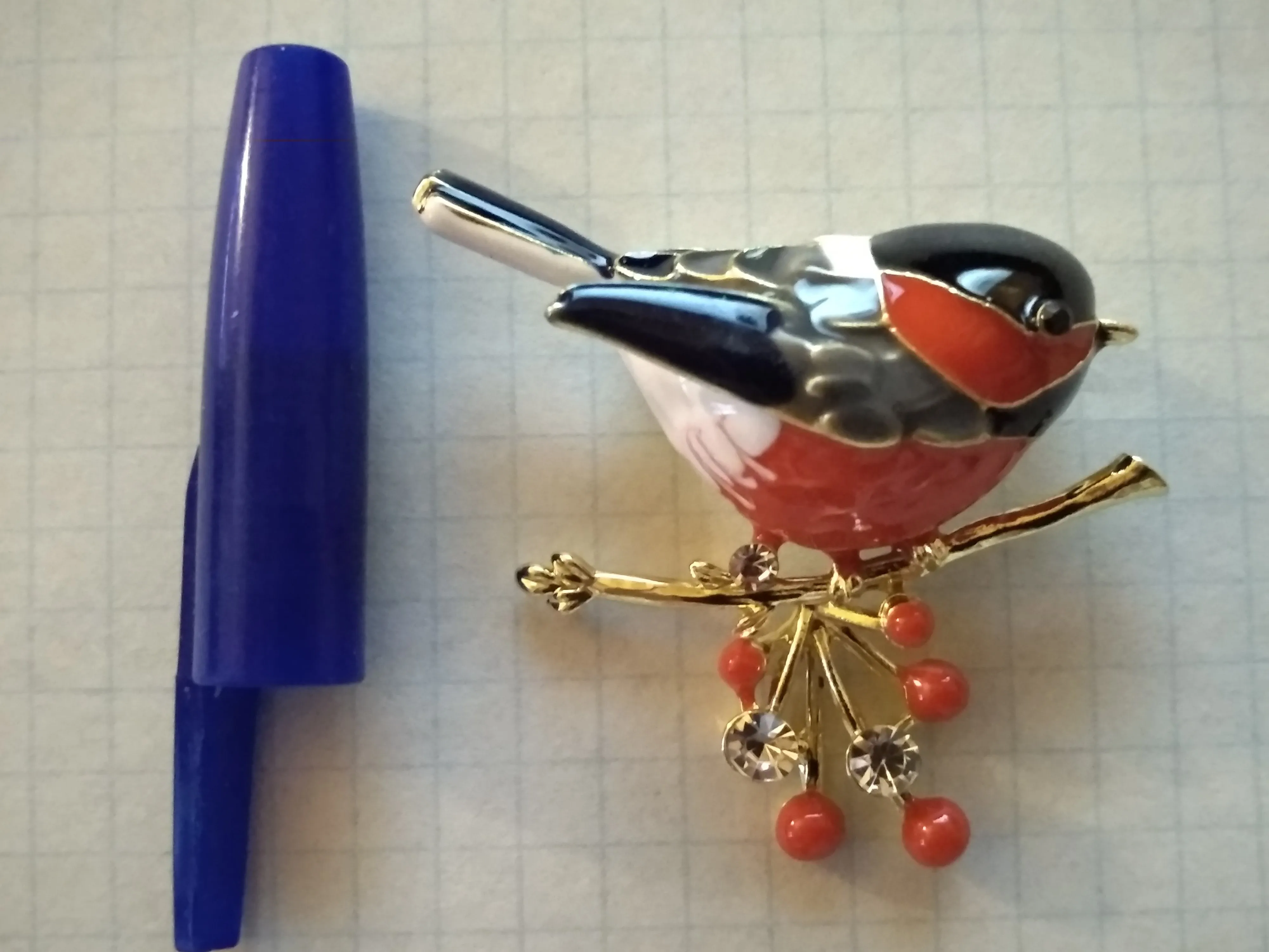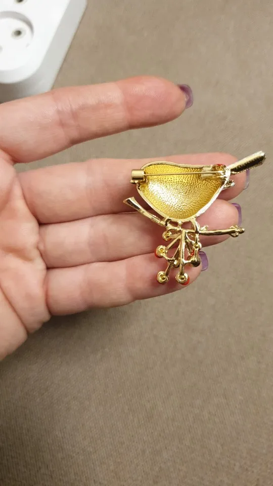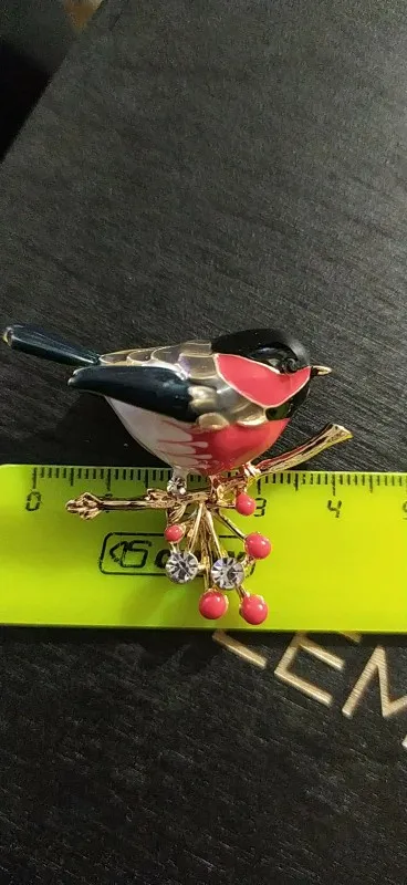 Брошь доставлена в Санкт-Петербург за 18 дней от момента заказа, пришла в общей посылке с другими заказами. Описанию соответствует полностью, упаковка: индивидуальный zip-пакетик. Сама птичка объемная,выглядит отлично. Замочек очень простой. Длина брошки: 4 см, высота: 3,8 см. Спасибо большое продавцу,я довольна!