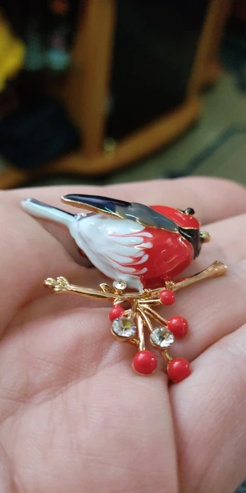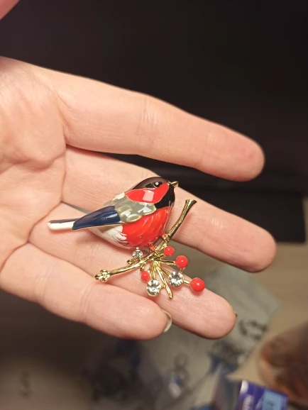Снегирь, симпатичная брошка!! заказ пришёл быстро и всё прекрасно упаковано . За эту цену замечательно!!!