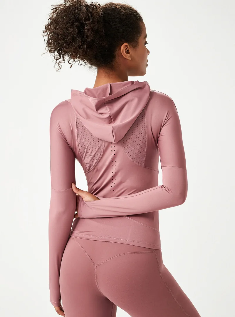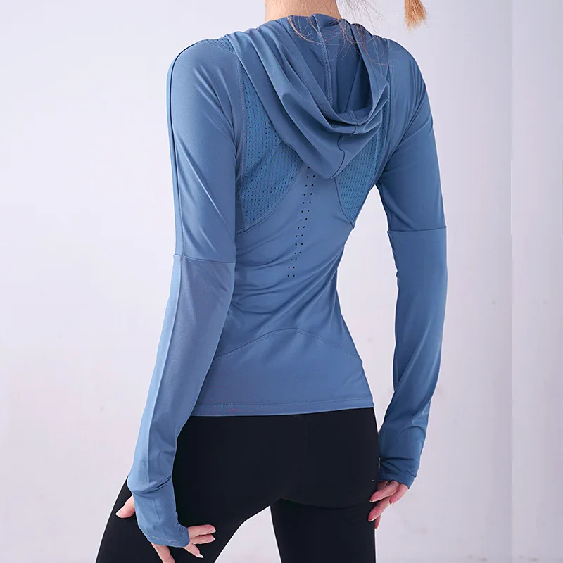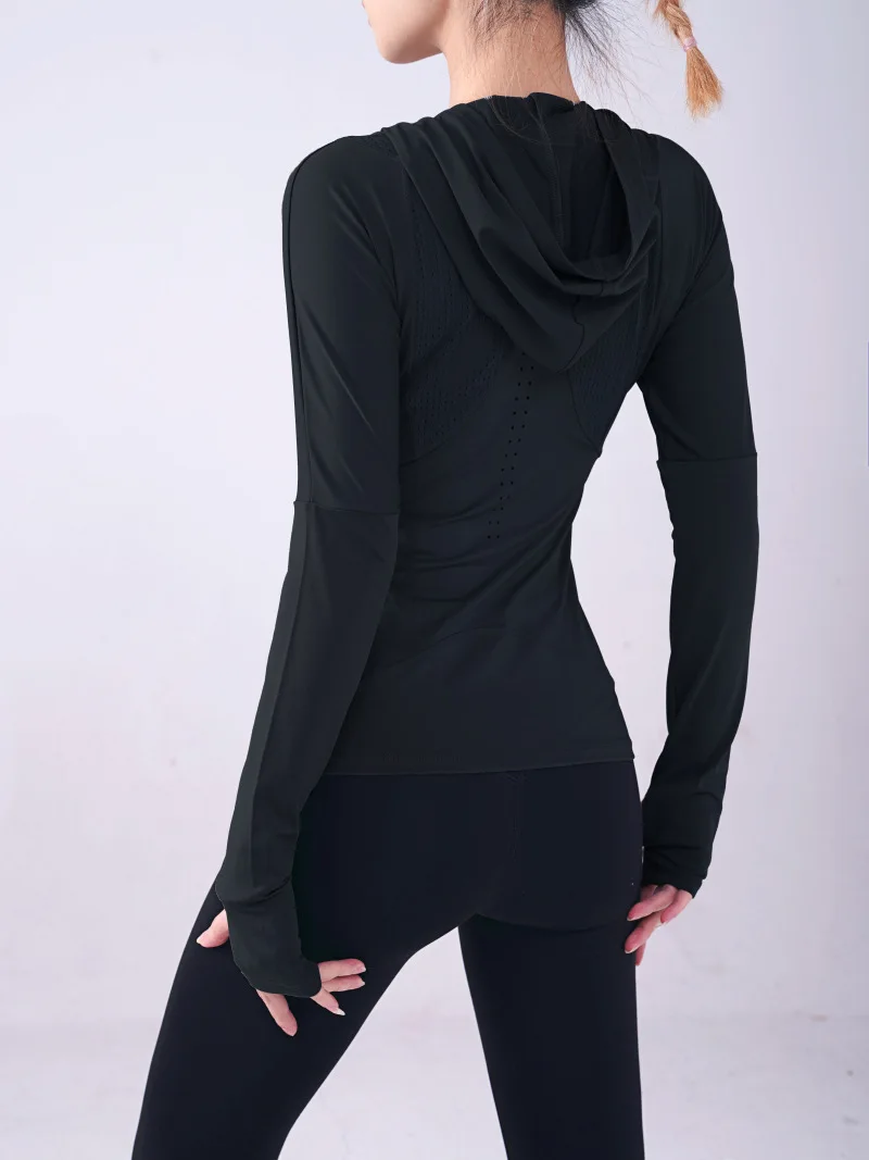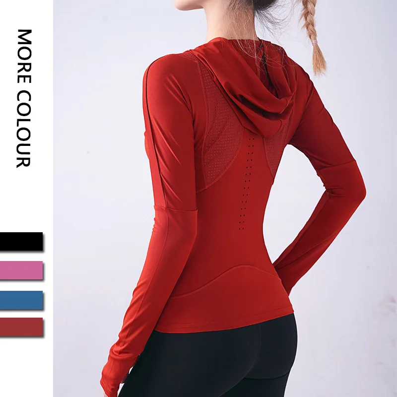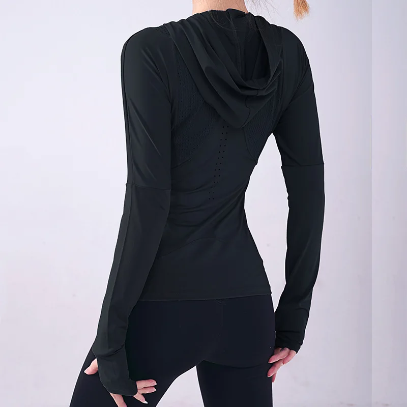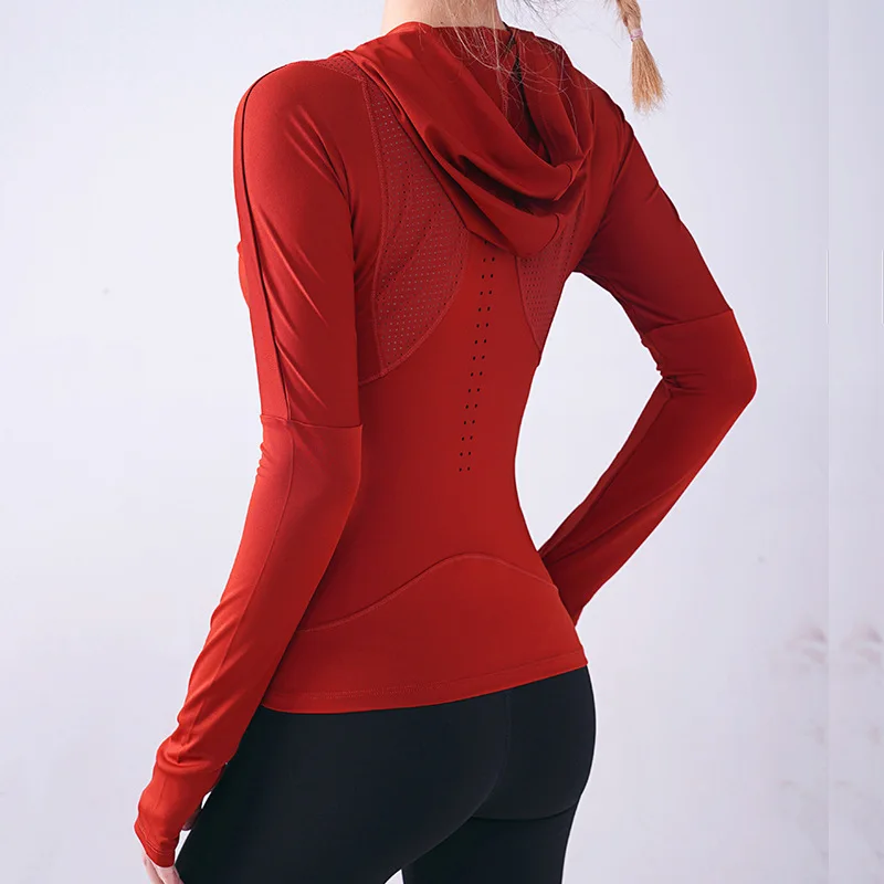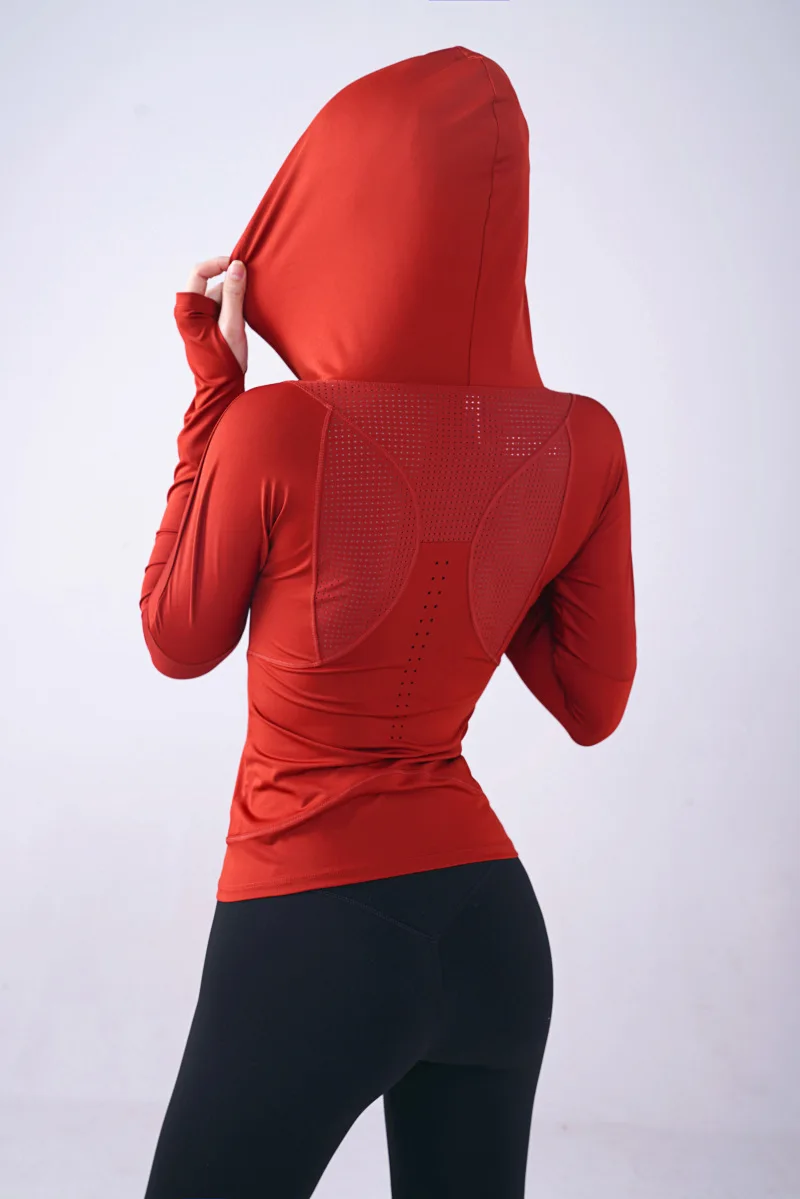 Женская спортивная рубашка Wmuncc с длинными рукавами, для бега, йоги, Приталенная толстовка с капюшоном, пальто для фитнеса, быстросохнущая, для тренировок