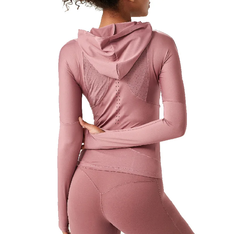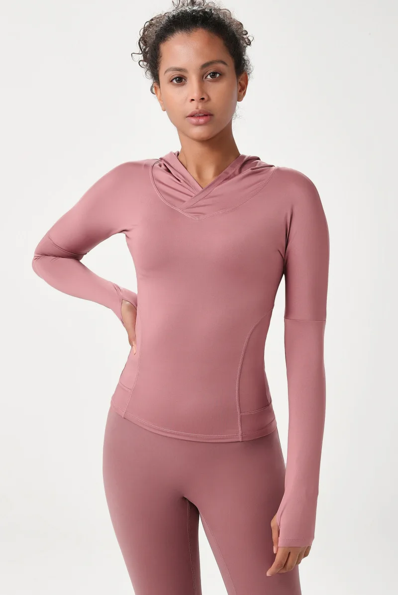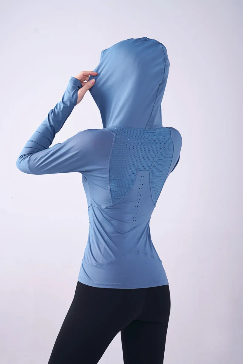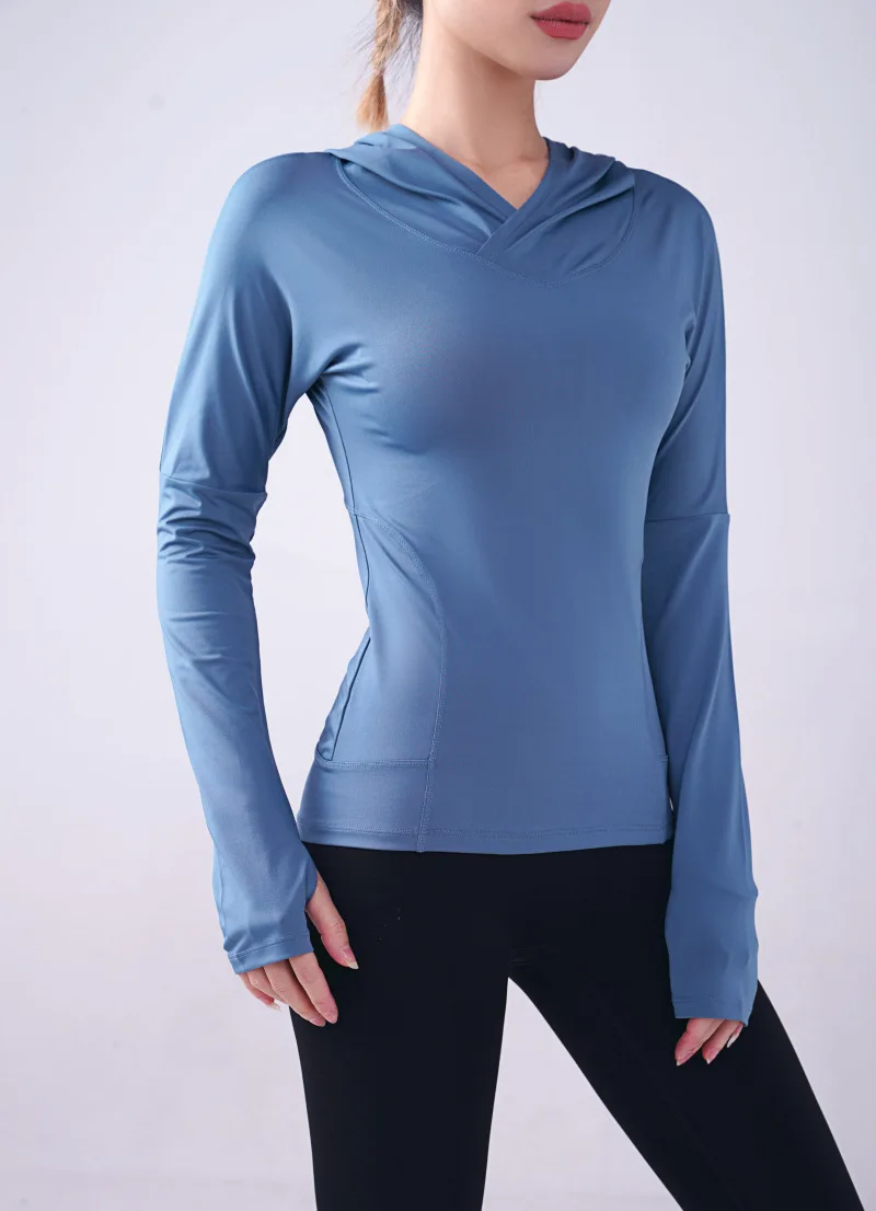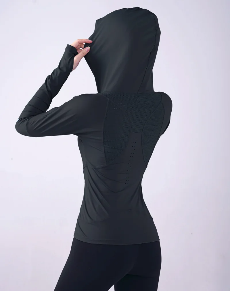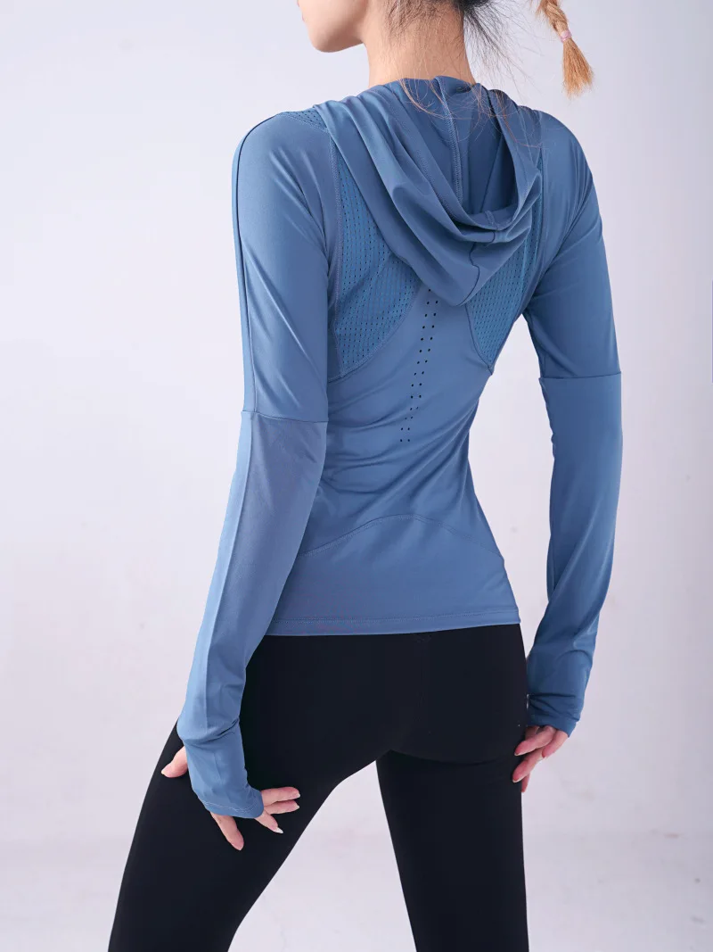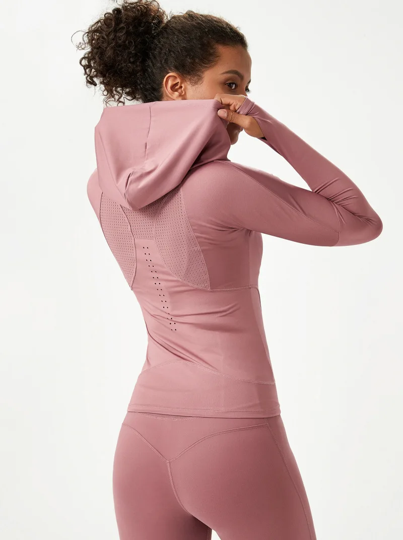 Женская спортивная рубашка Wmuncc с длинными рукавами, для бега, йоги, Приталенная толстовка с капюшоном, пальто для фитнеса, быстросохнущая, для тренировок