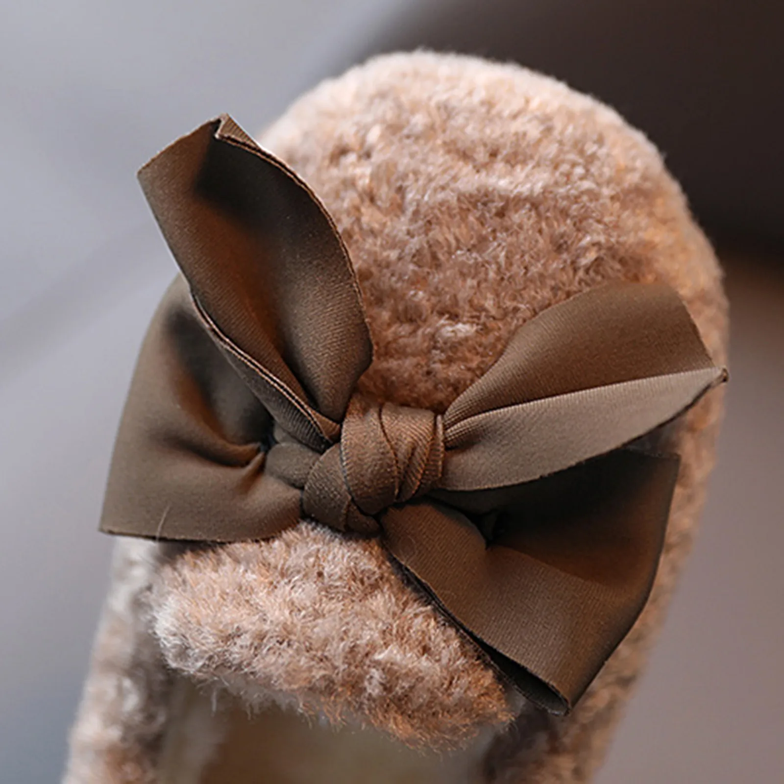 Детская флисовая обувь на плоской подошве; Осенняя теплая легкая обувь для маленьких девочек; Повседневные лоферы; Тапочки цвета хаки; Рождественская обувь с бантом; Лидер продаж