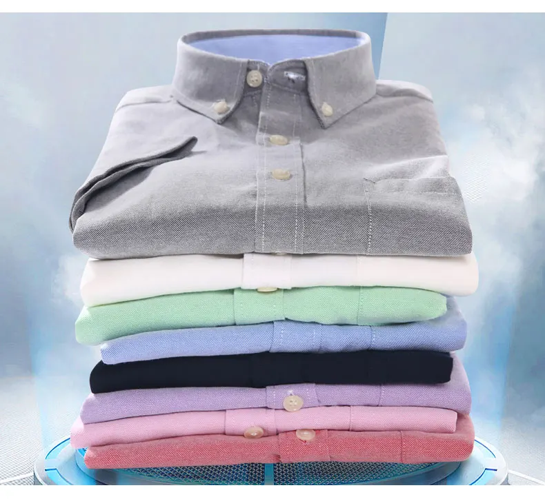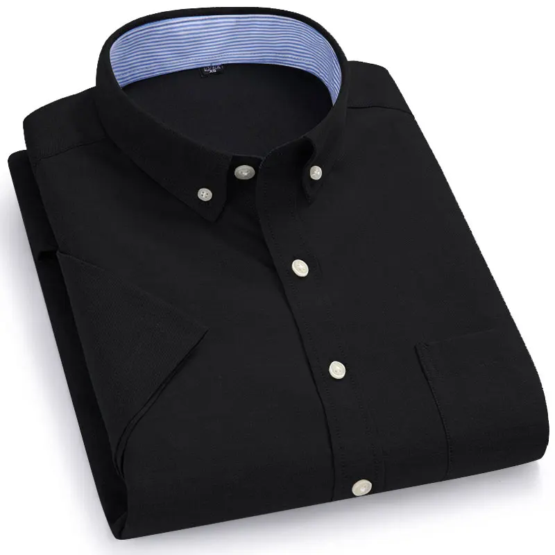 Рубашка мужская из ткани Оксфорд, сорочка с короткими рукавами, воротник на пуговицах, мягкая сорочка кроя Regular Fit, дышащая повседневная, однотонная, на лето