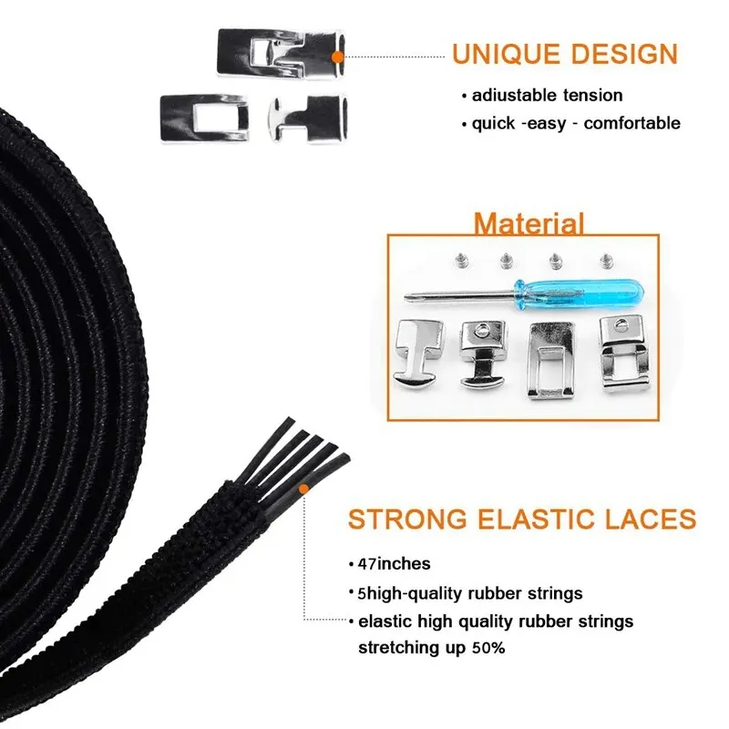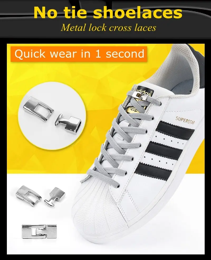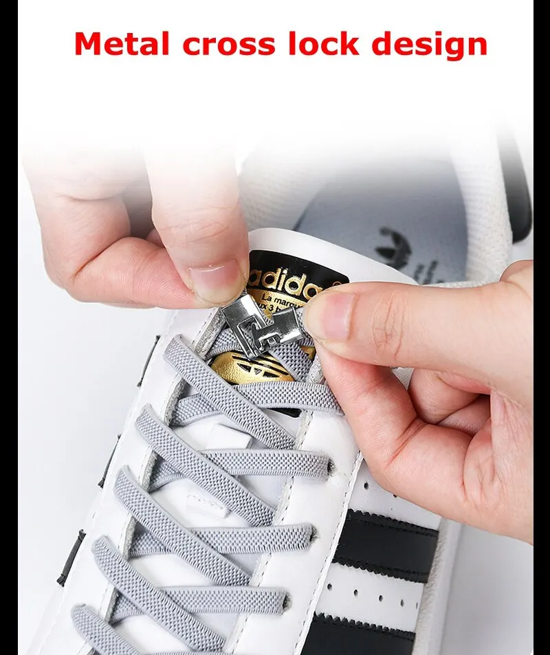 Эластичные шнурки для кроссовок, без завязывания, с металлическим крестом, подходят для пеших прогулок и занятий спортом, универсальные для детей и взрослых, для ленивых