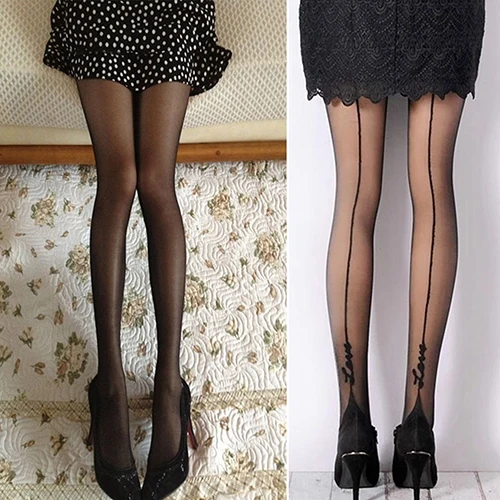 Женские чулки, сексуальные, в английском стиле, тату буква, жаккардовые леггинсы, колготки со швом, Чулки с прозрачной задней частью