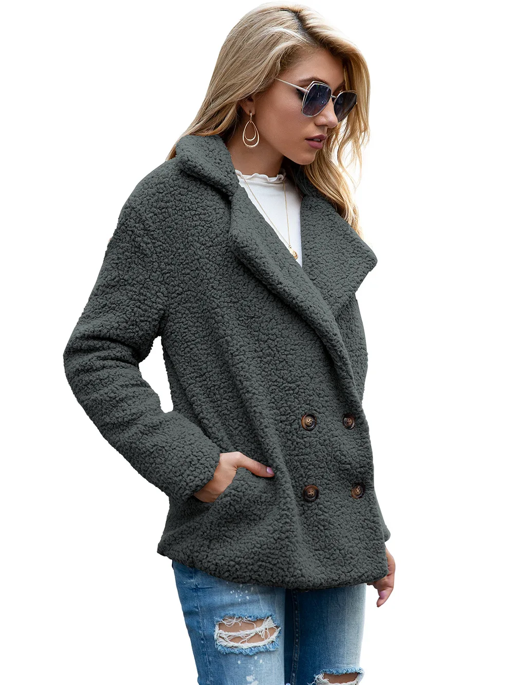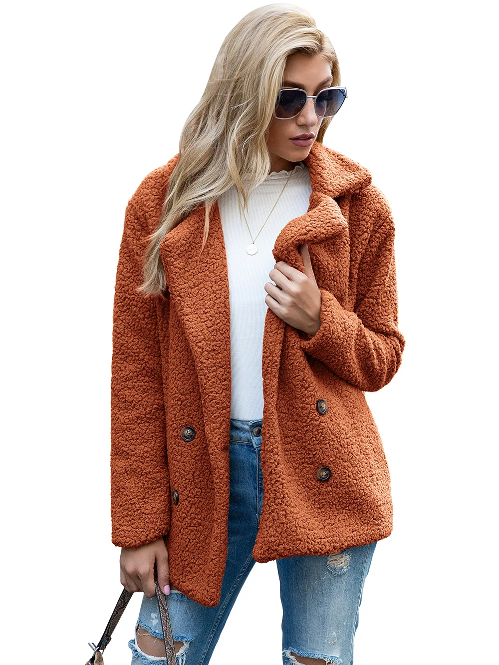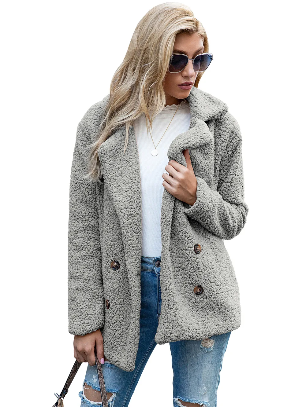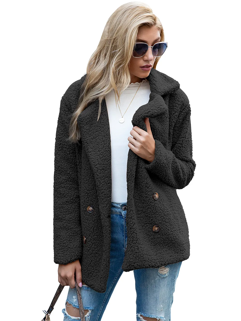 FORERUN зимняя плюшевая куртка женская однотонная двубортная модная...