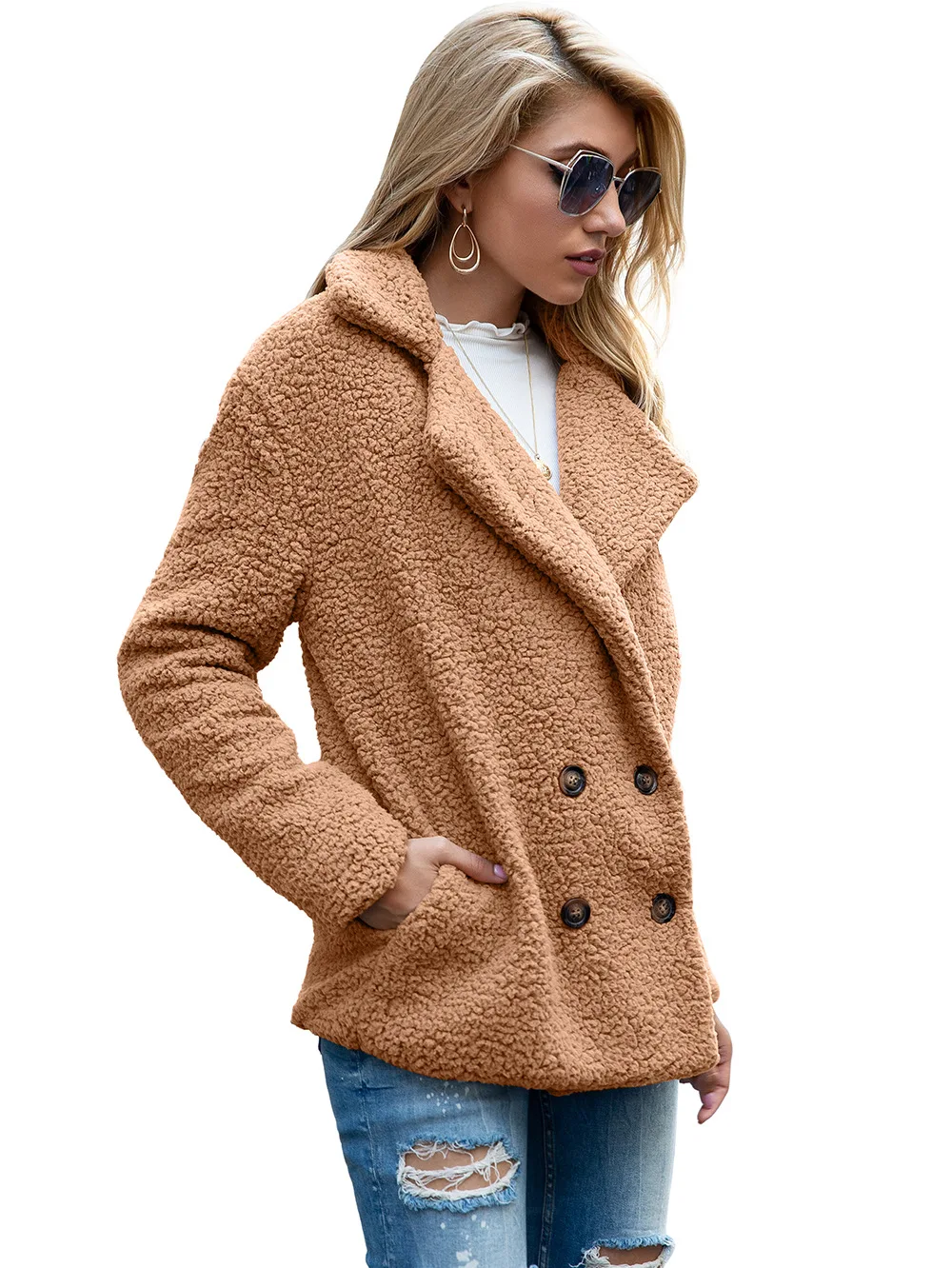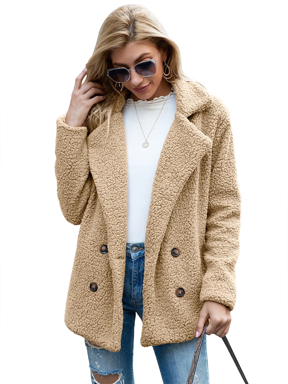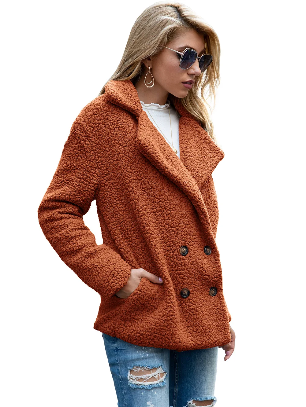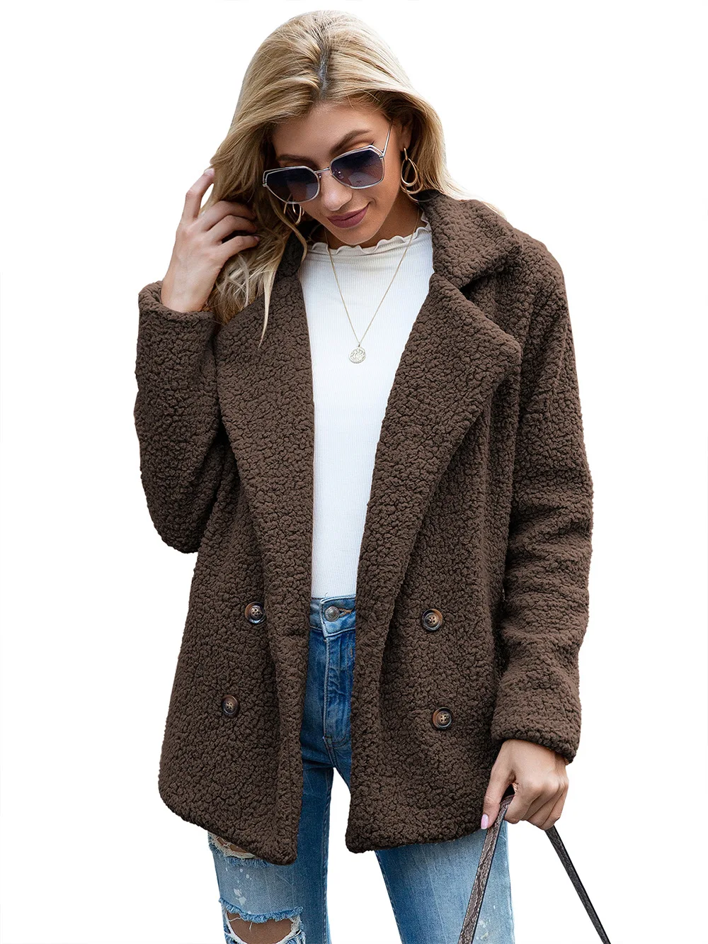 FORERUN зимняя плюшевая куртка женская однотонная двубортная модная...