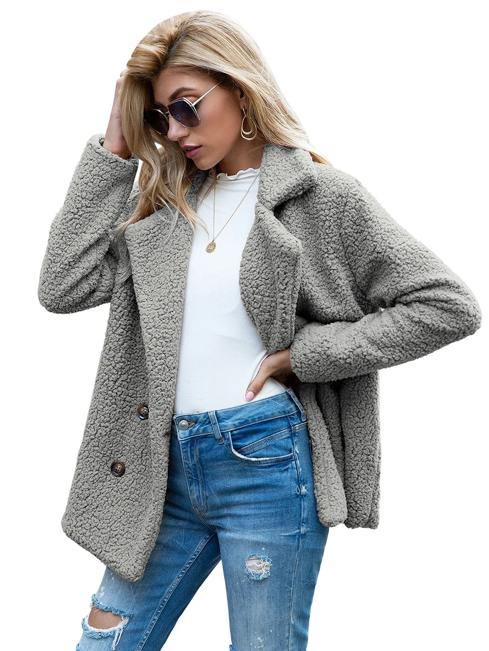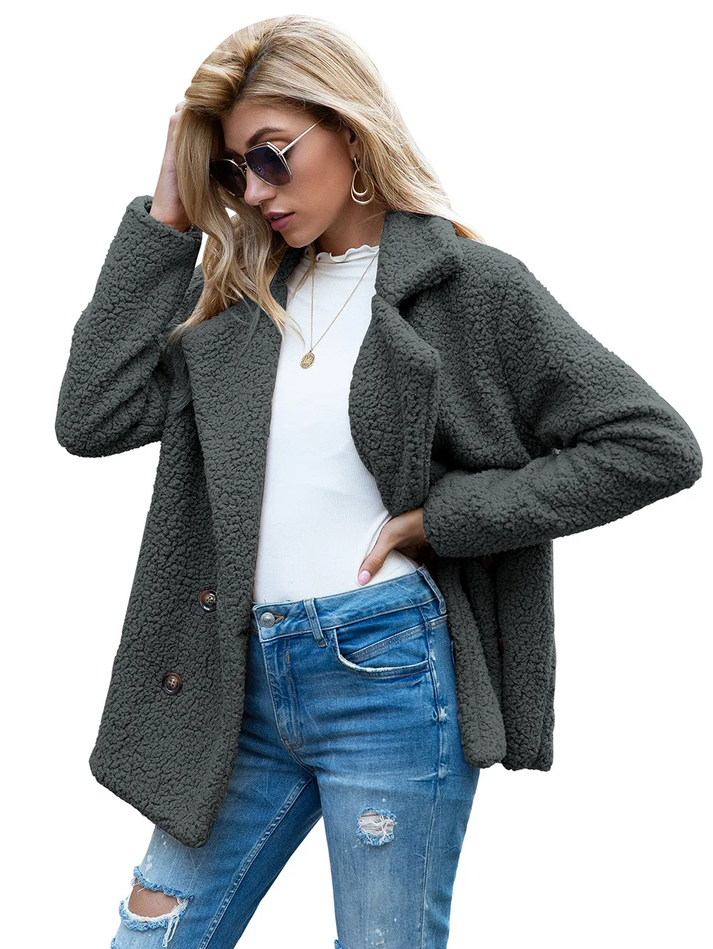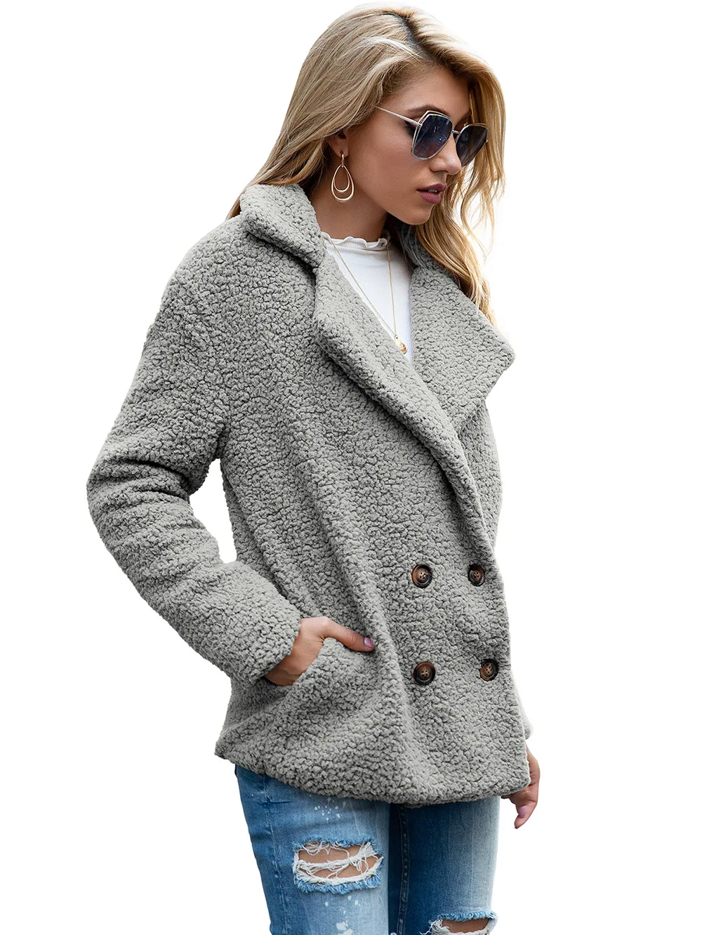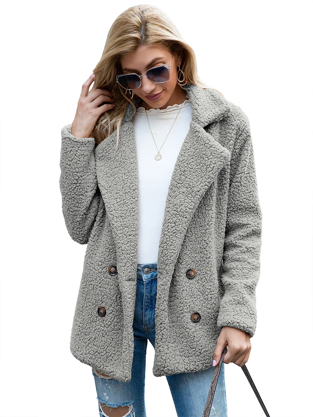 FORERUN зимняя плюшевая куртка женская однотонная двубортная модная...