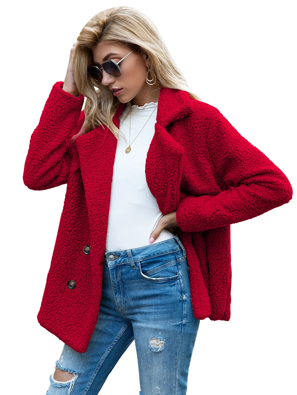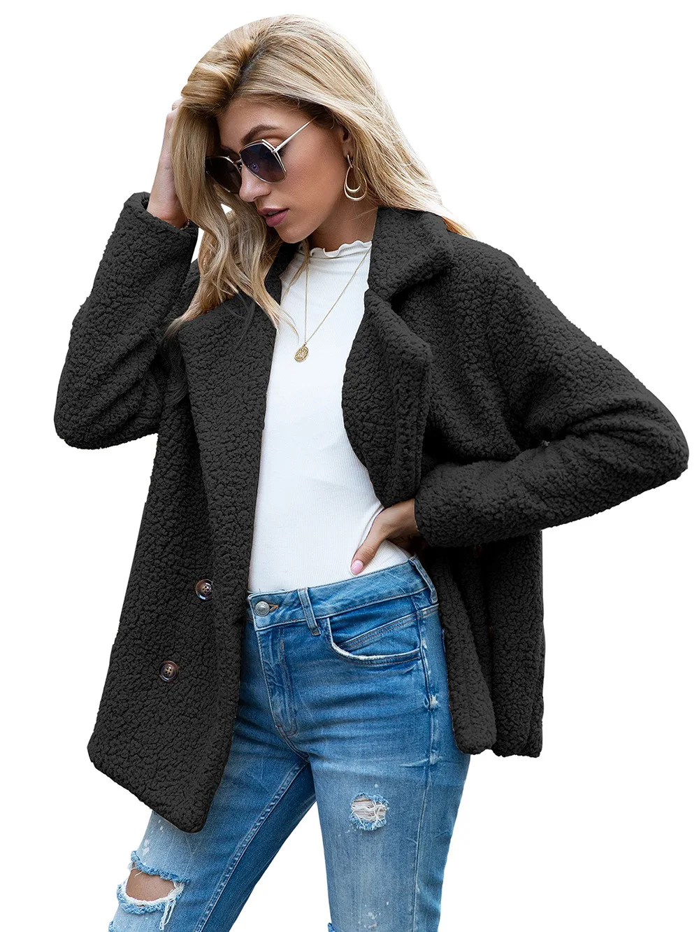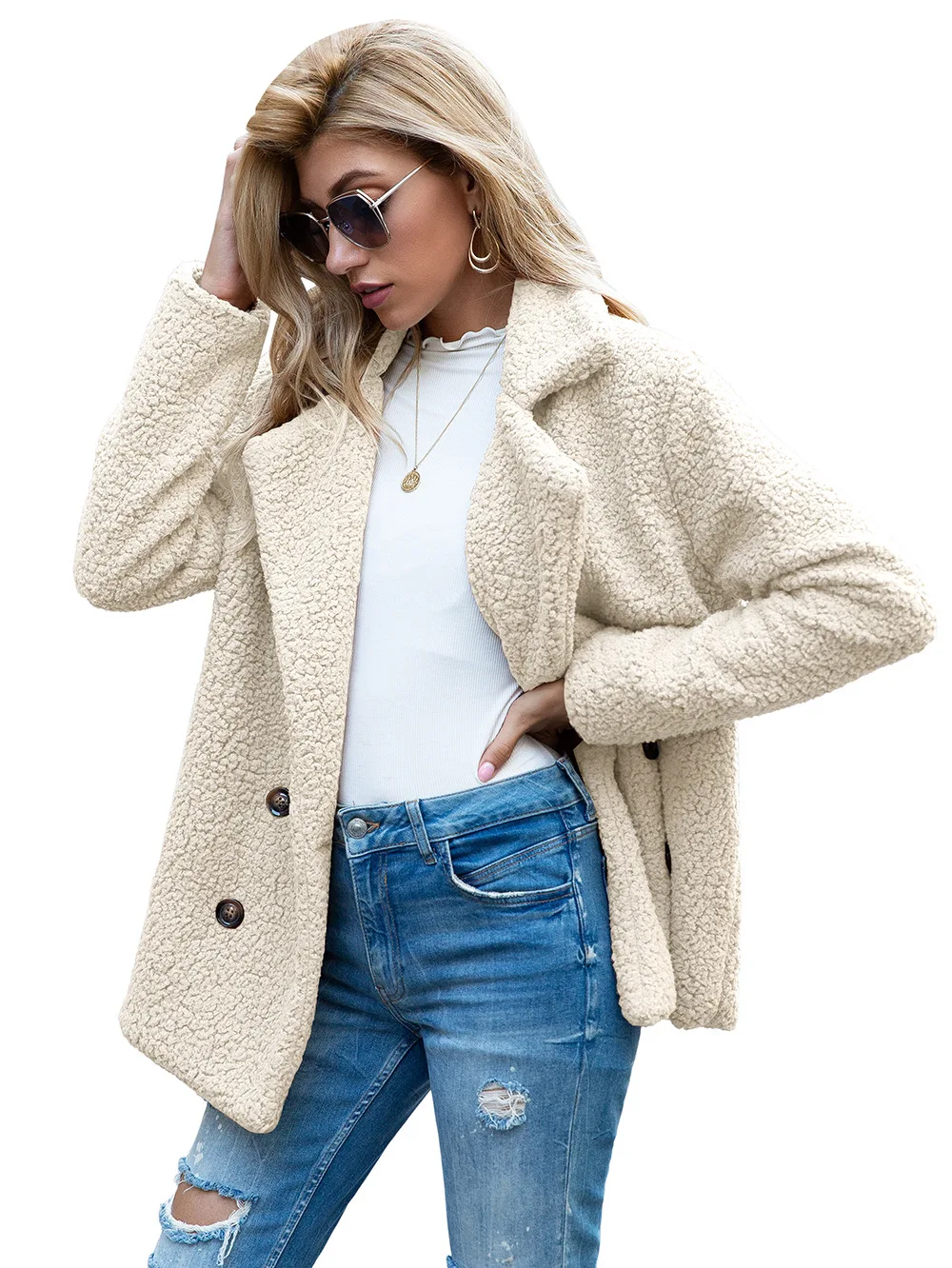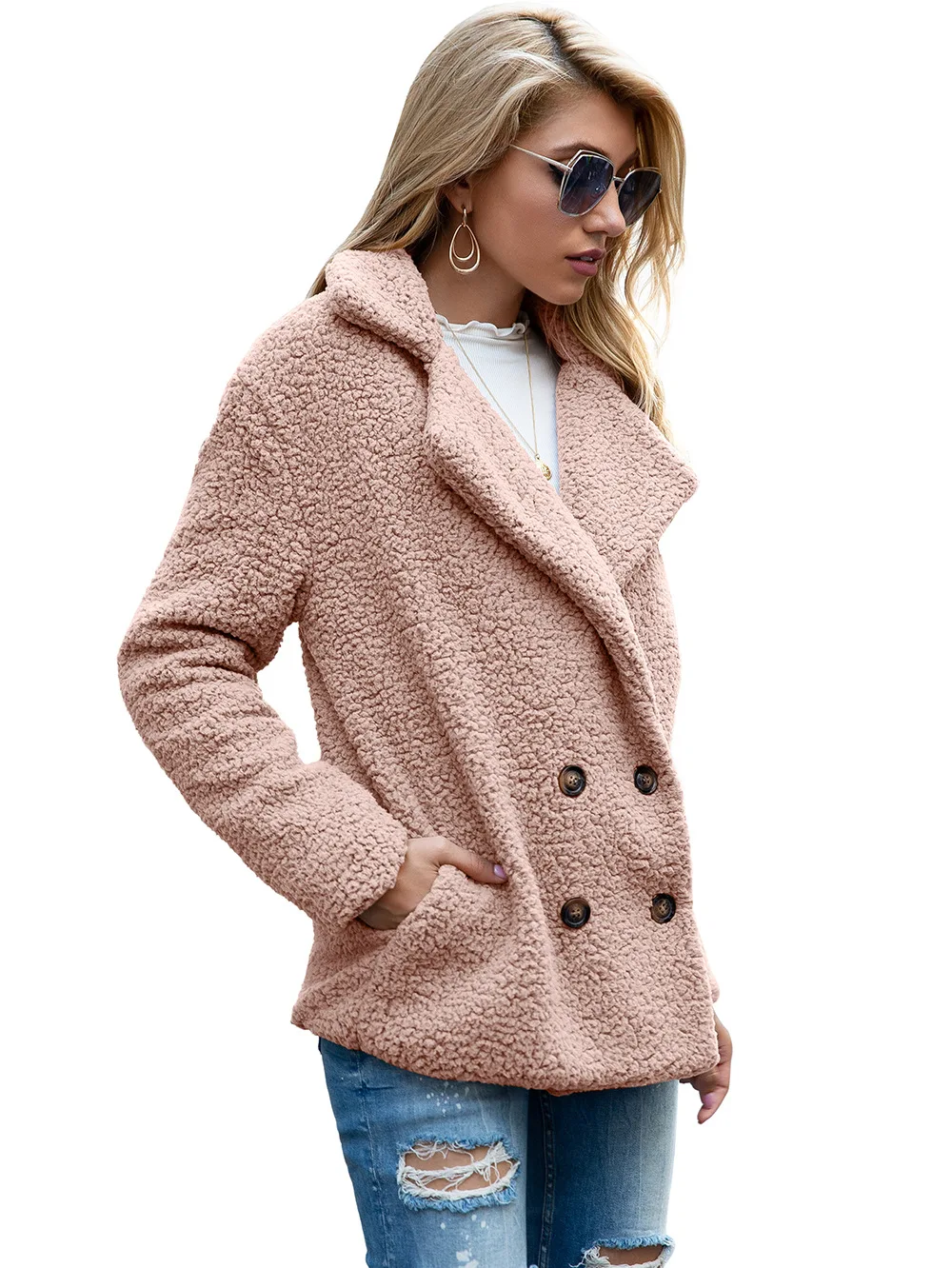 FORERUN зимняя плюшевая куртка женская однотонная двубортная модная...